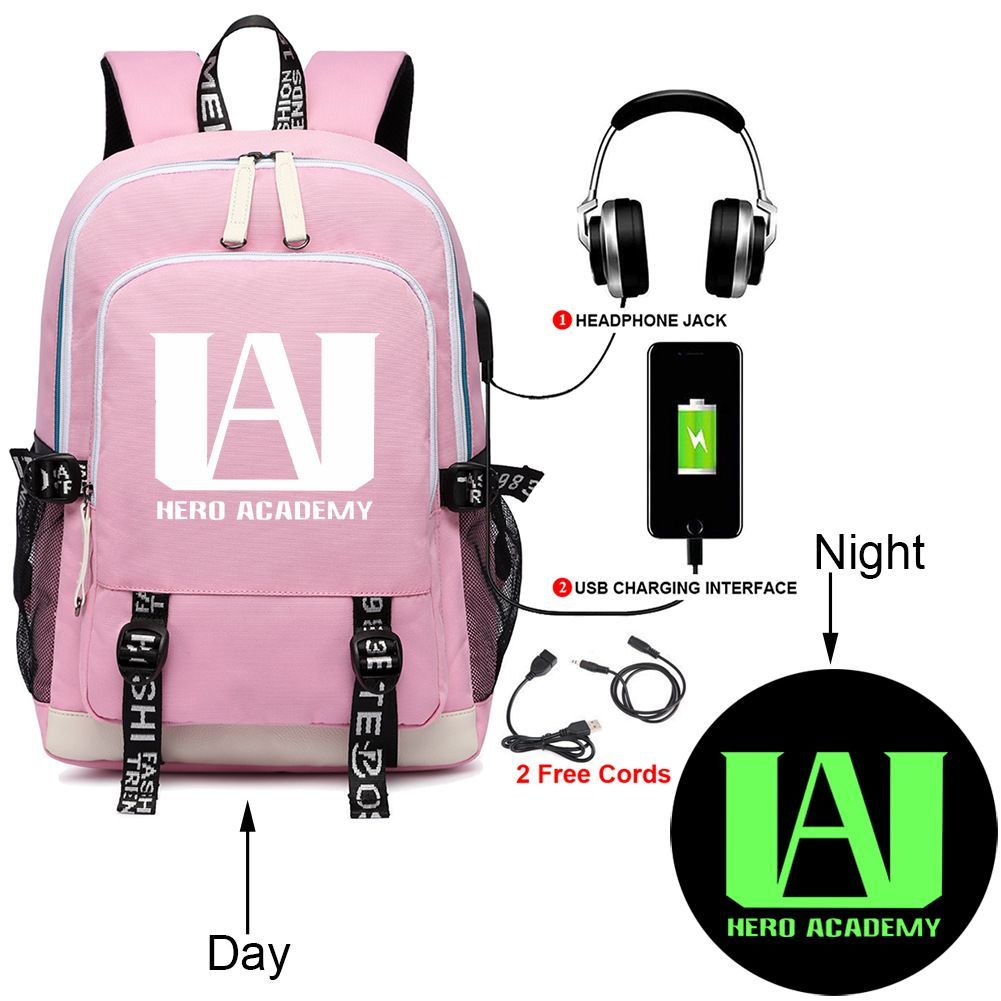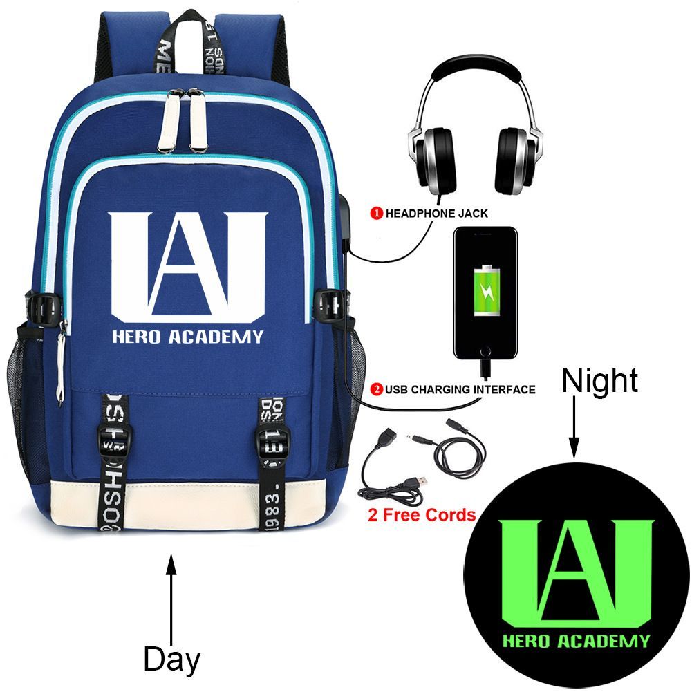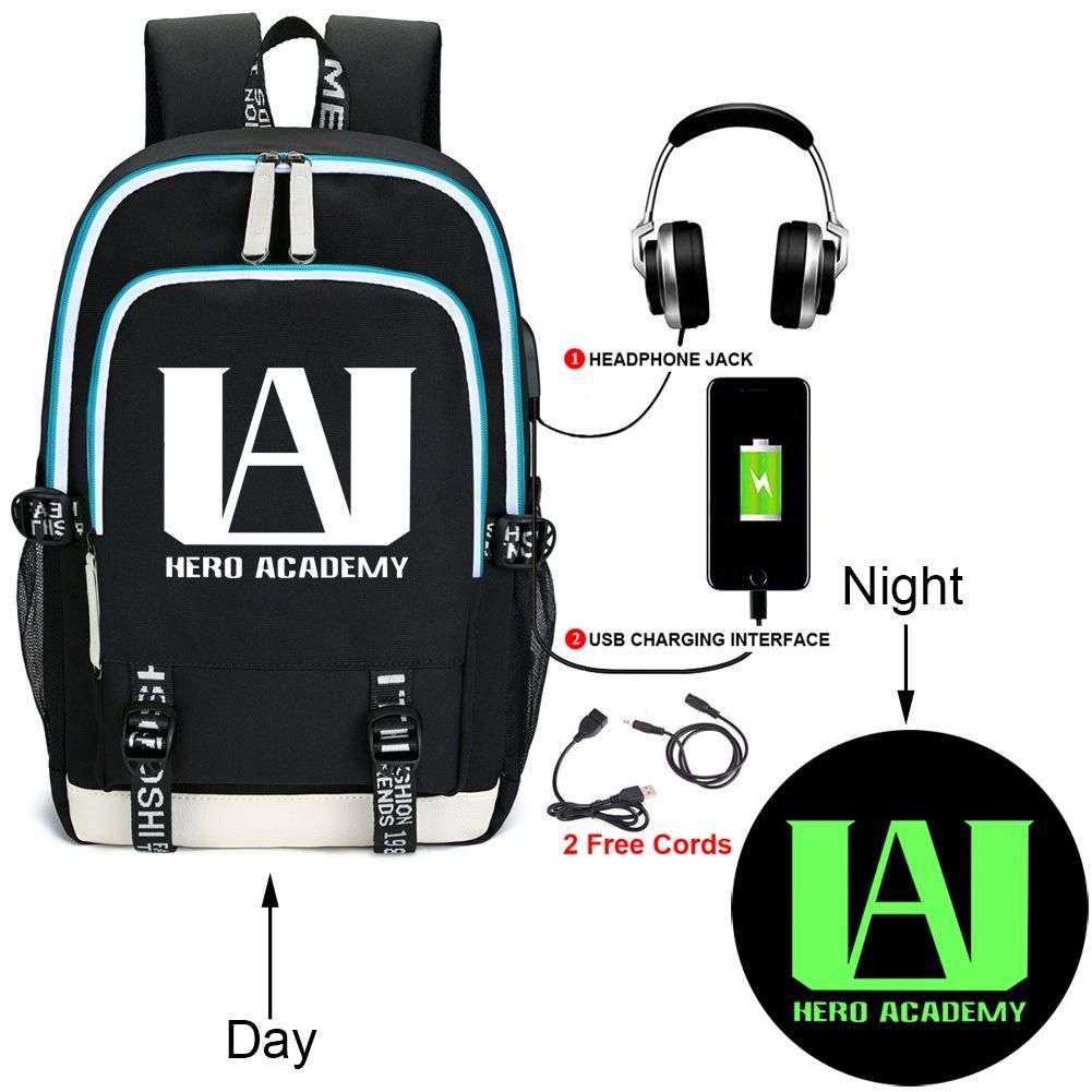 Anime My Hero Academia USB Rucksack Herren Damen Leuchtend Schultasche 30x15x44