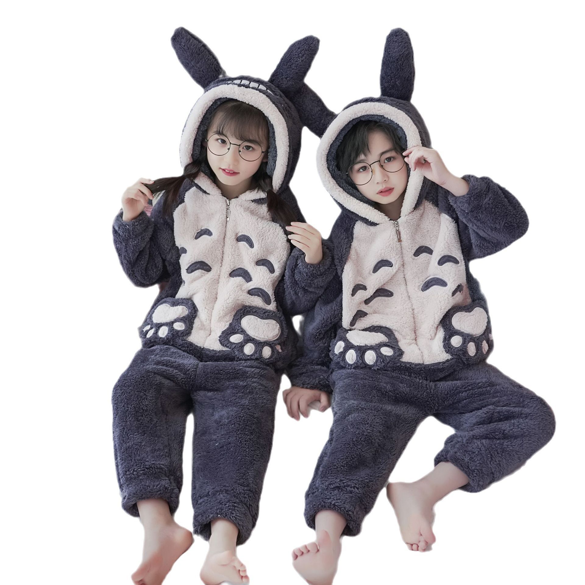 Anime My Neighbor Totoro Hooded Pajamas Miyazaki Kinder Zip Jumpsuit Warm Homewear