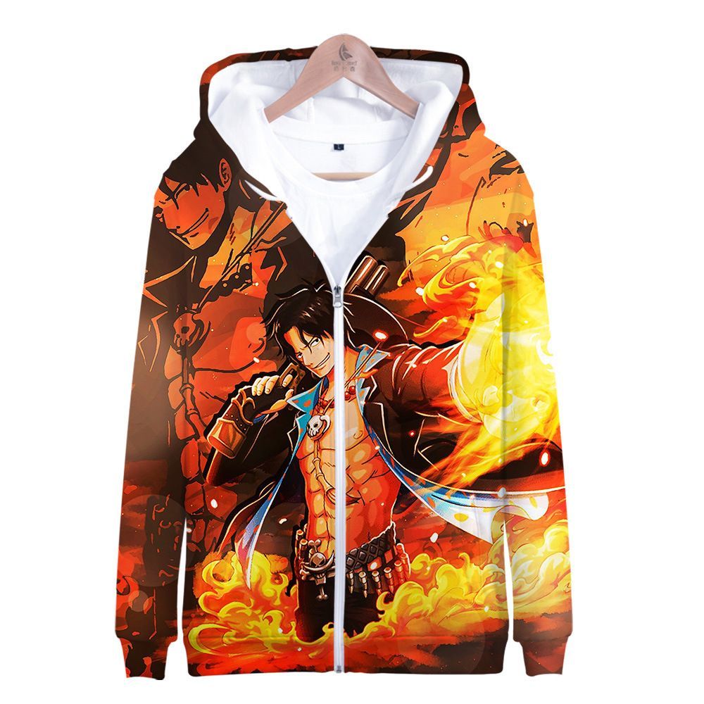 Anime One Piece Kapuzenpullover Luffy Zoro Ace Zip Cardigan Jungen Hooded Sweatshirt