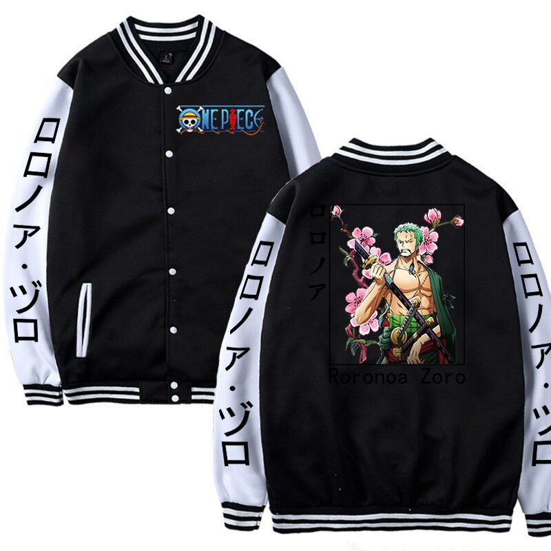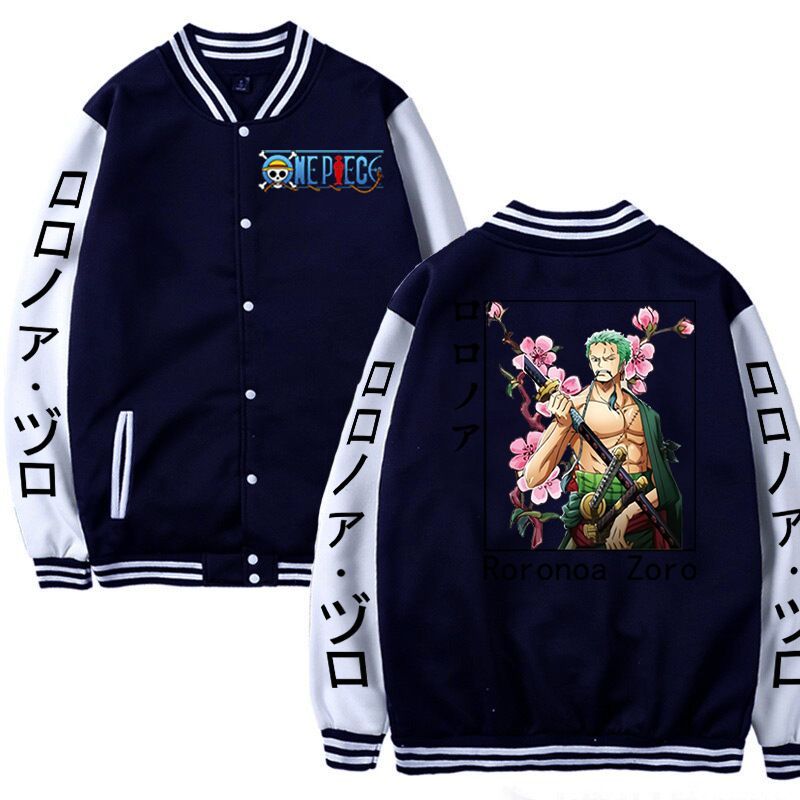 Anime One Piece Zoro Baseballjacke Herren Damen Varsity Jacke Bomberjacke Mantel
