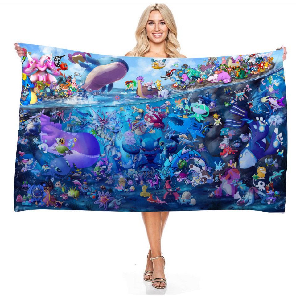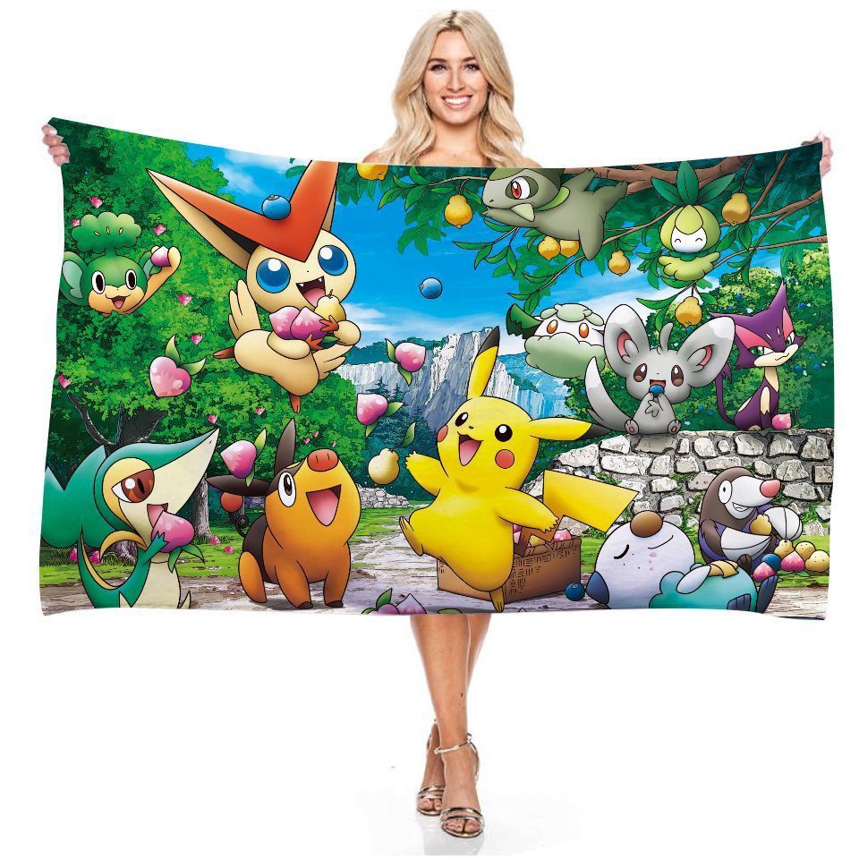 Anime Pokemon Elf Pikachu Psyduck Strandtuch Scream Tail Badetücher Picknickmatte