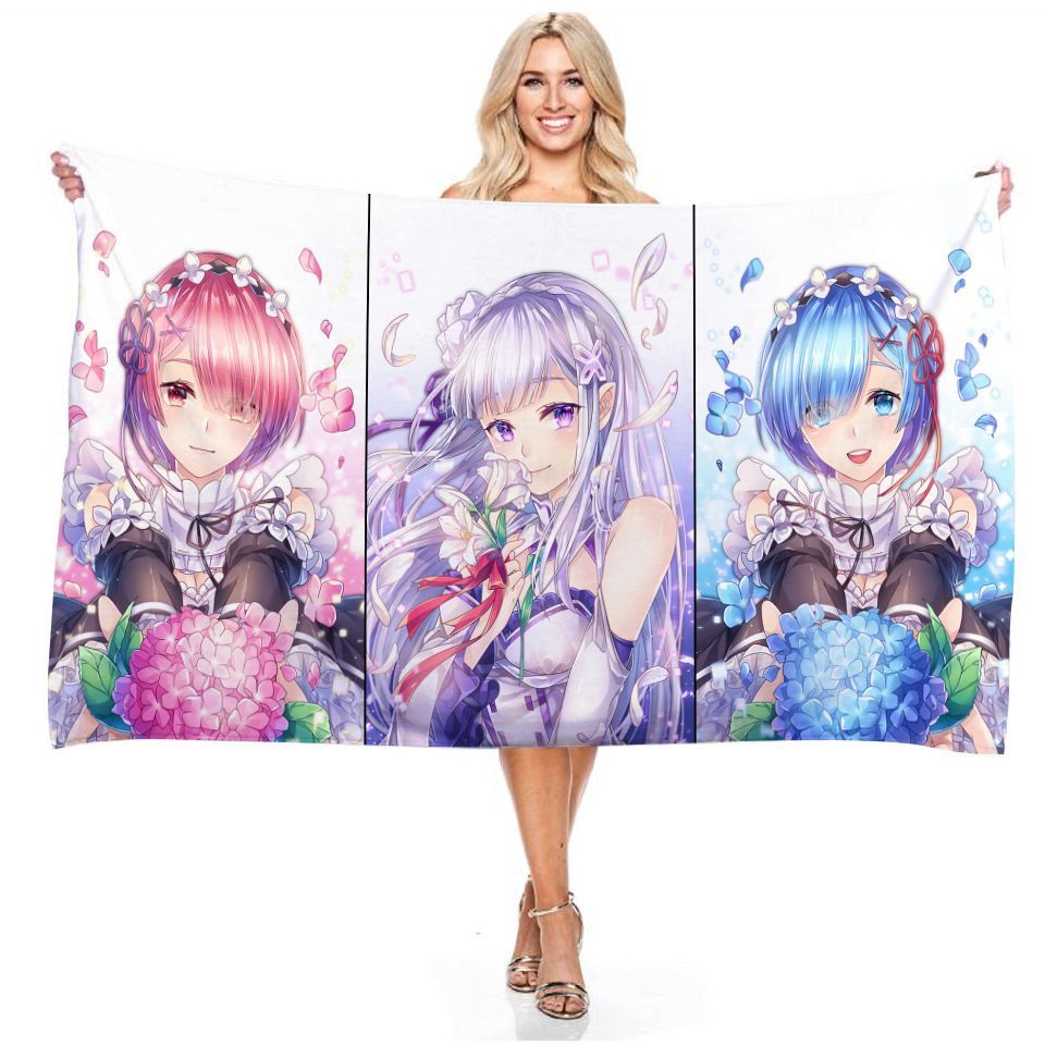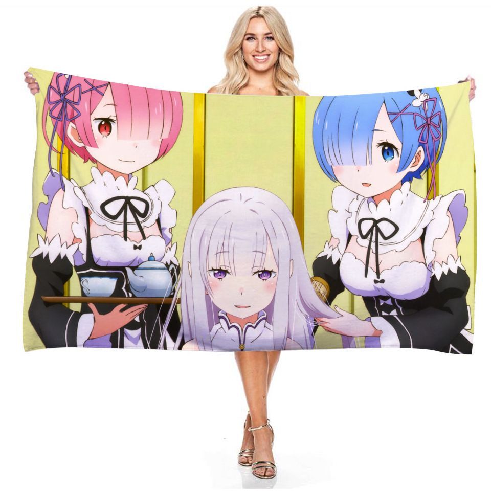 Anime Re Zero-Starting Life Emilia Strandtücher Rem Ram Badetücher Pool Picknickmatte