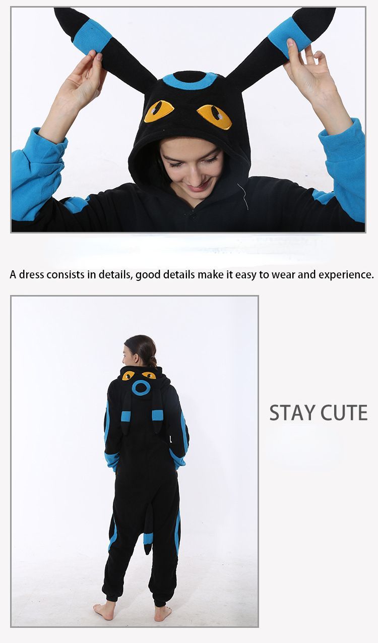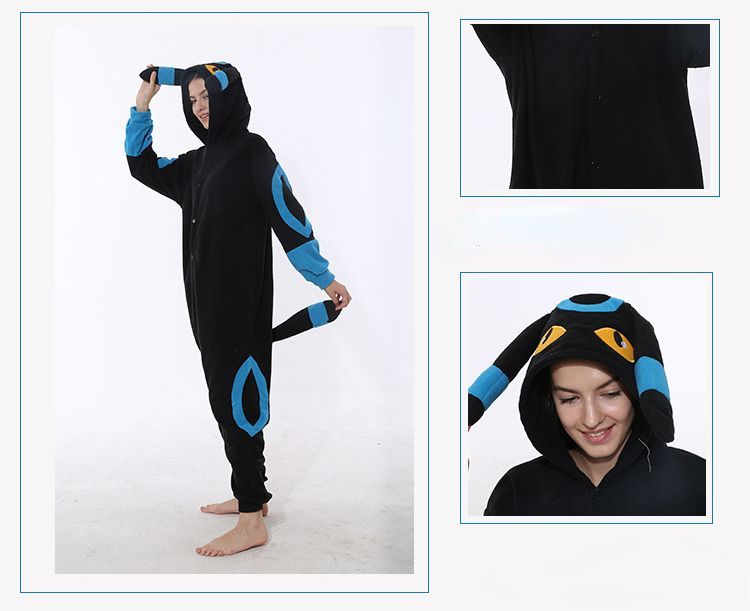 Anime Umbreon One-Piece Hooded Pyjama Cosplay Kostüm Winter Robe Schlafanzug