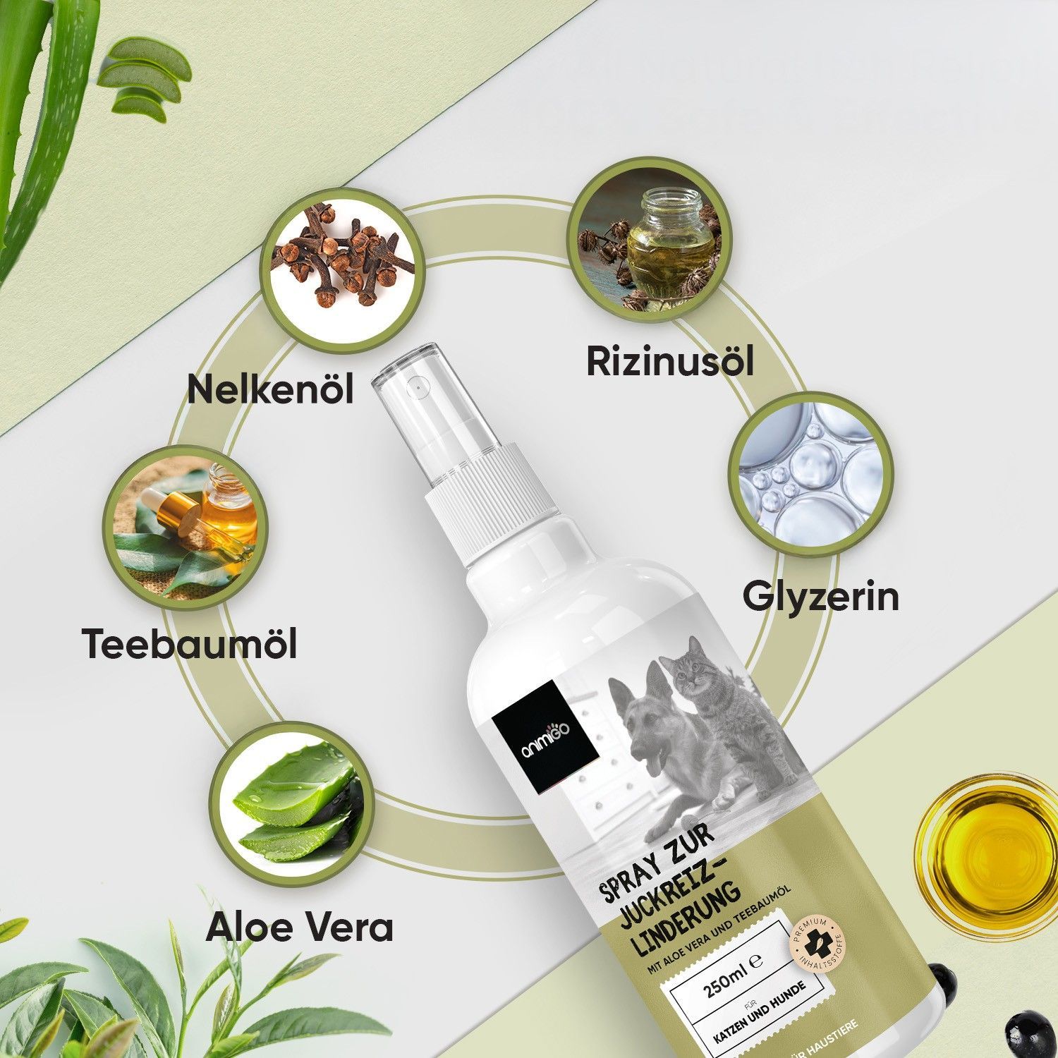 animigo Anti Juckreiz Spray - 250ml Fellpflege - Für Hunde & Katzen