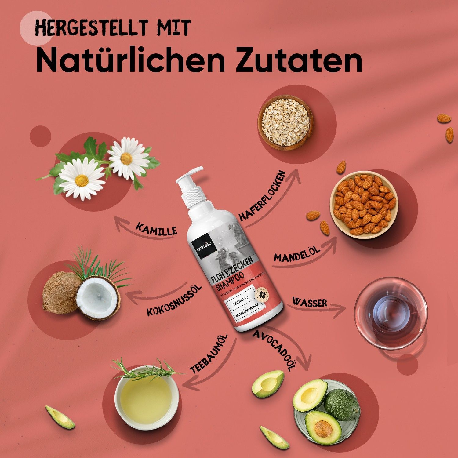 Natürliches Flohshampoo - Floh und Zeckenschutz mit Kokosöl, Teebaumöl, Mandelöl