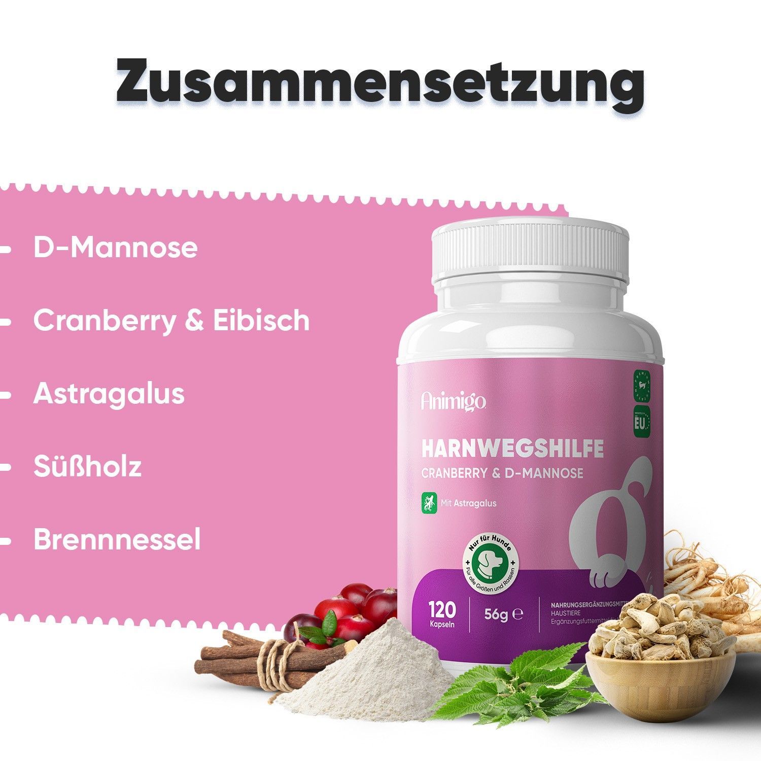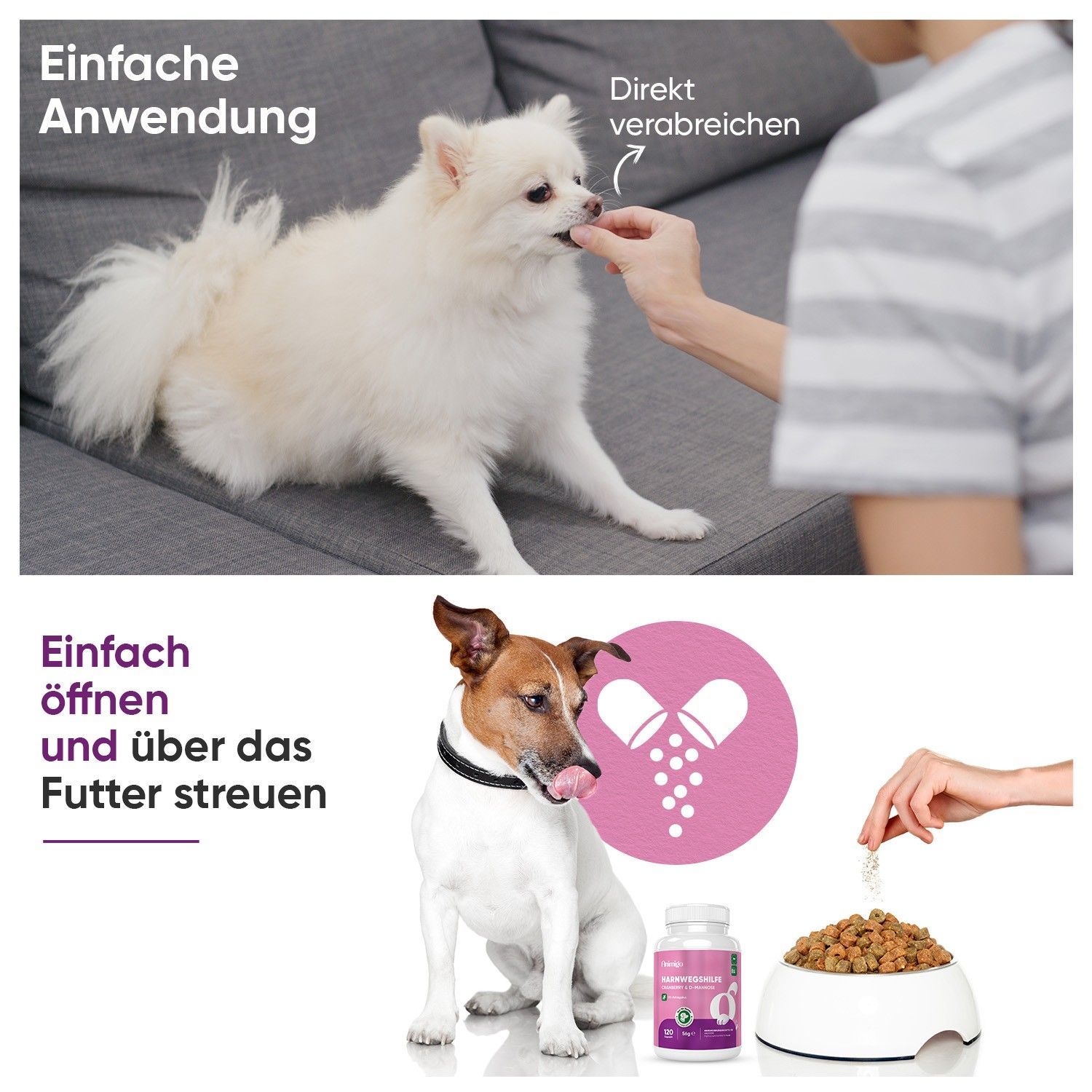 Animigo Harnwegshilfe für Hunde - 120 Kapseln für Haustiere - 2 Pack
