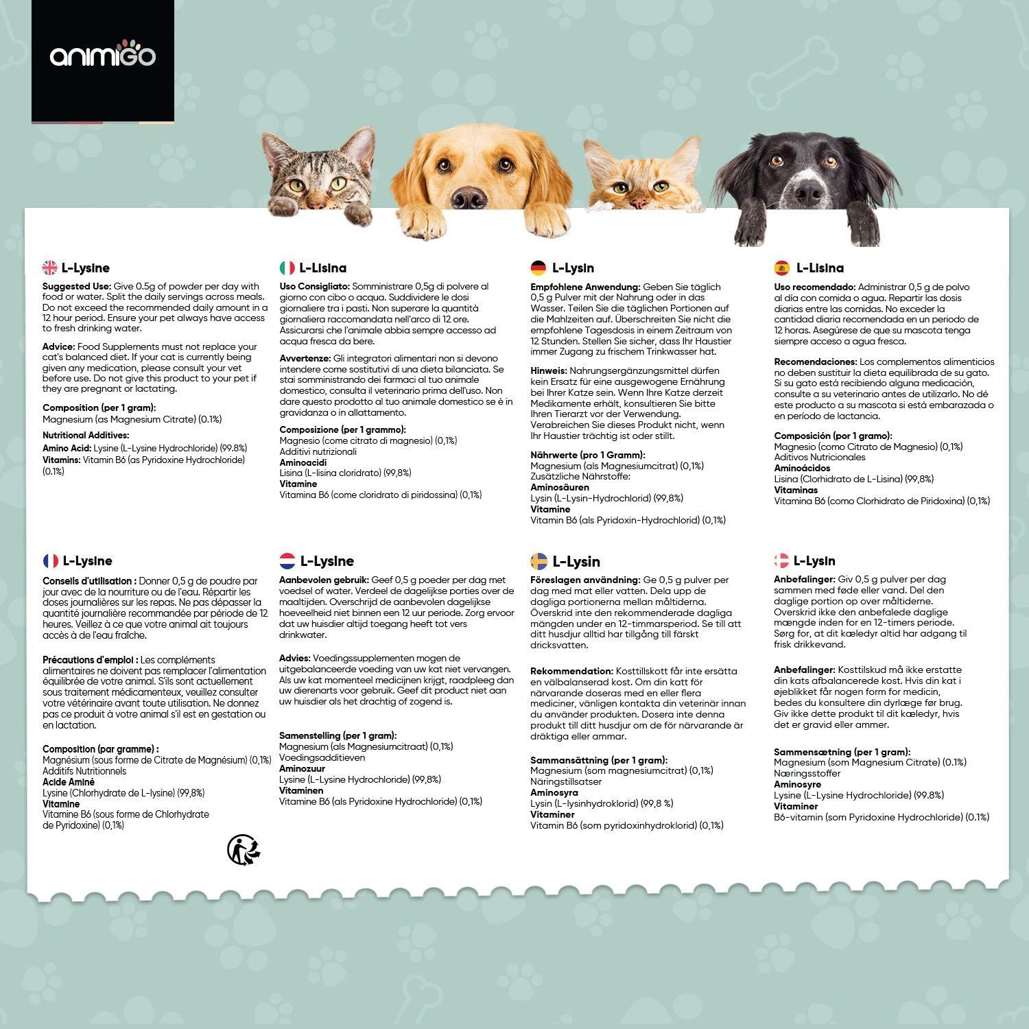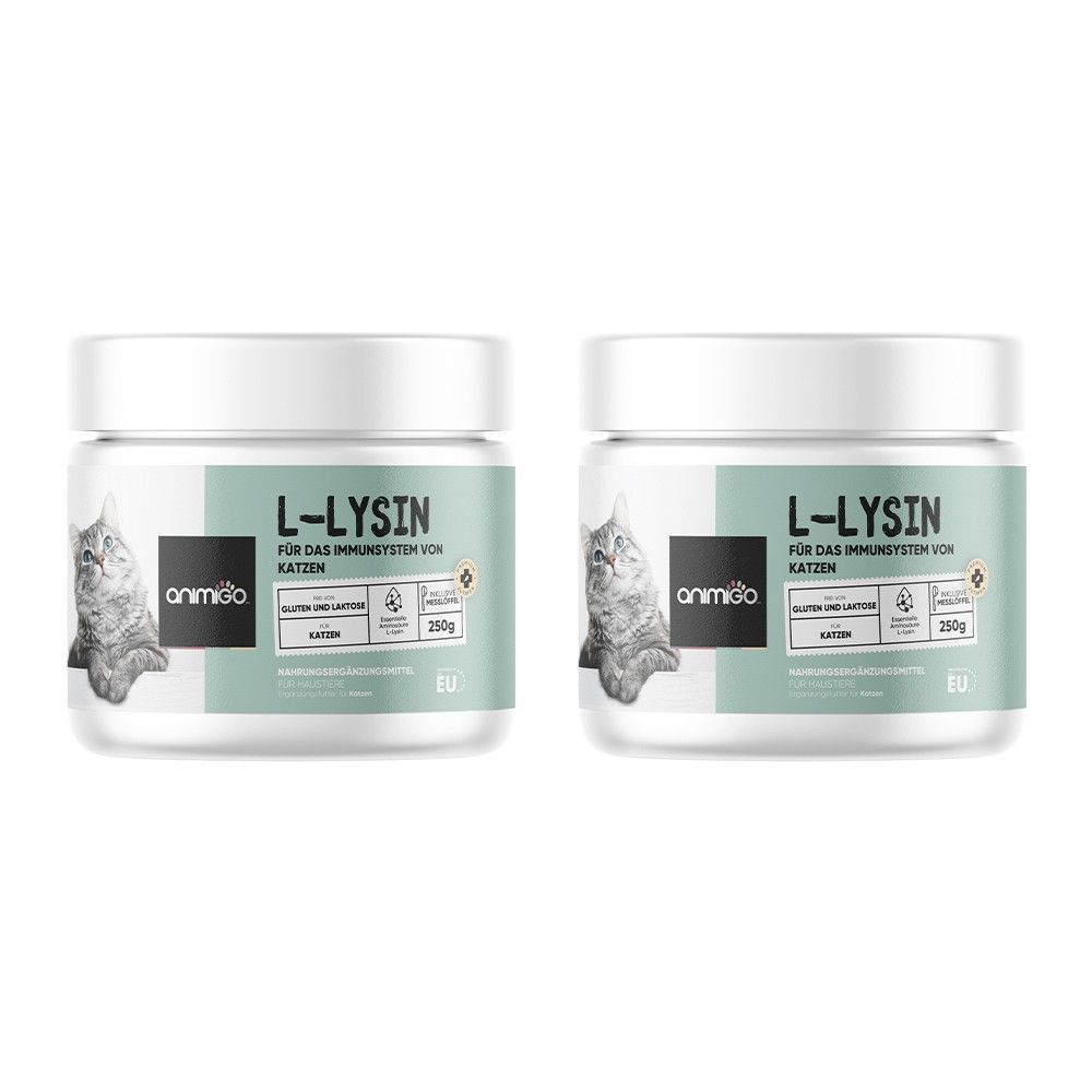 animigo L-Lysin für Katzen - 250g Pulver - Für Katzenschnup - 2 Flaschen