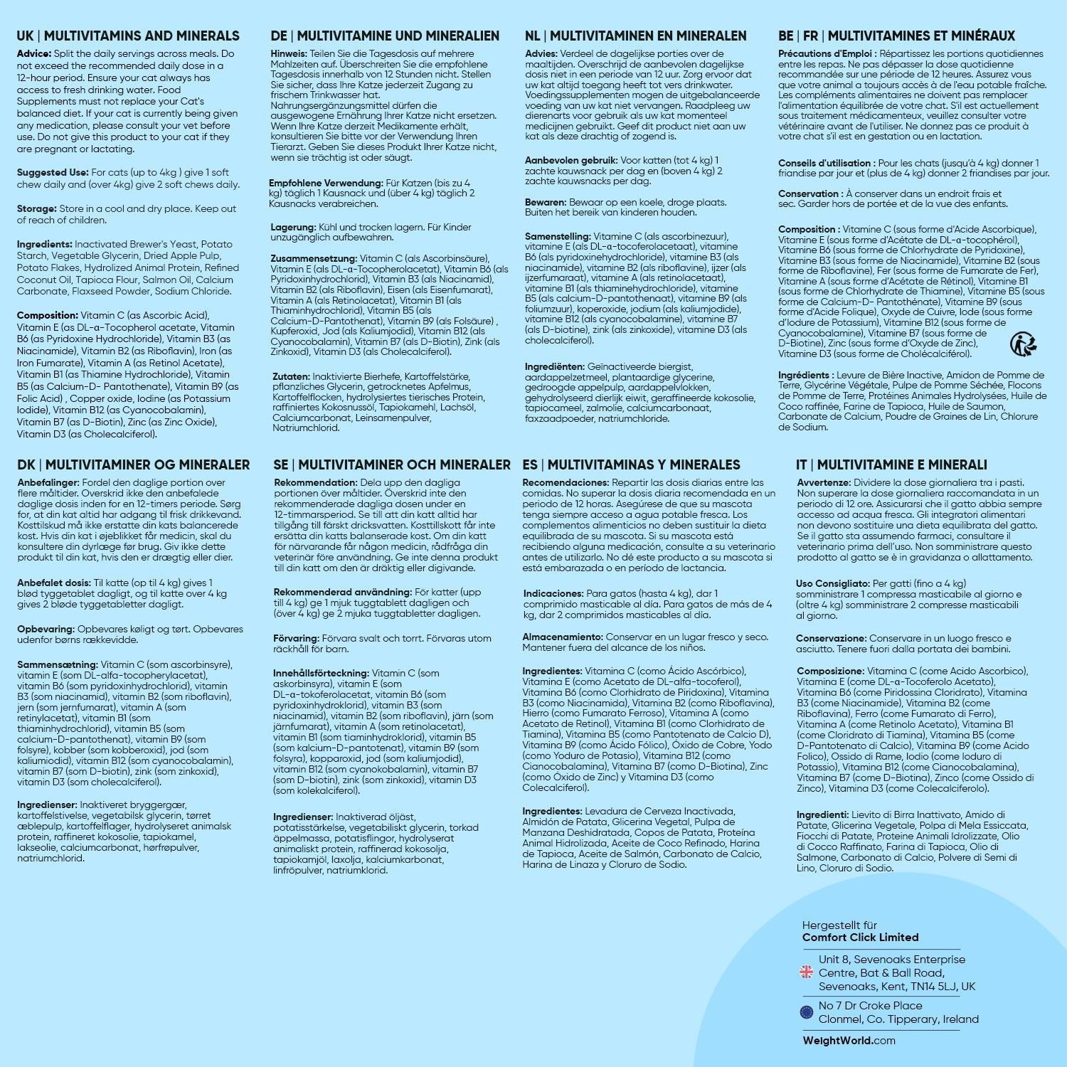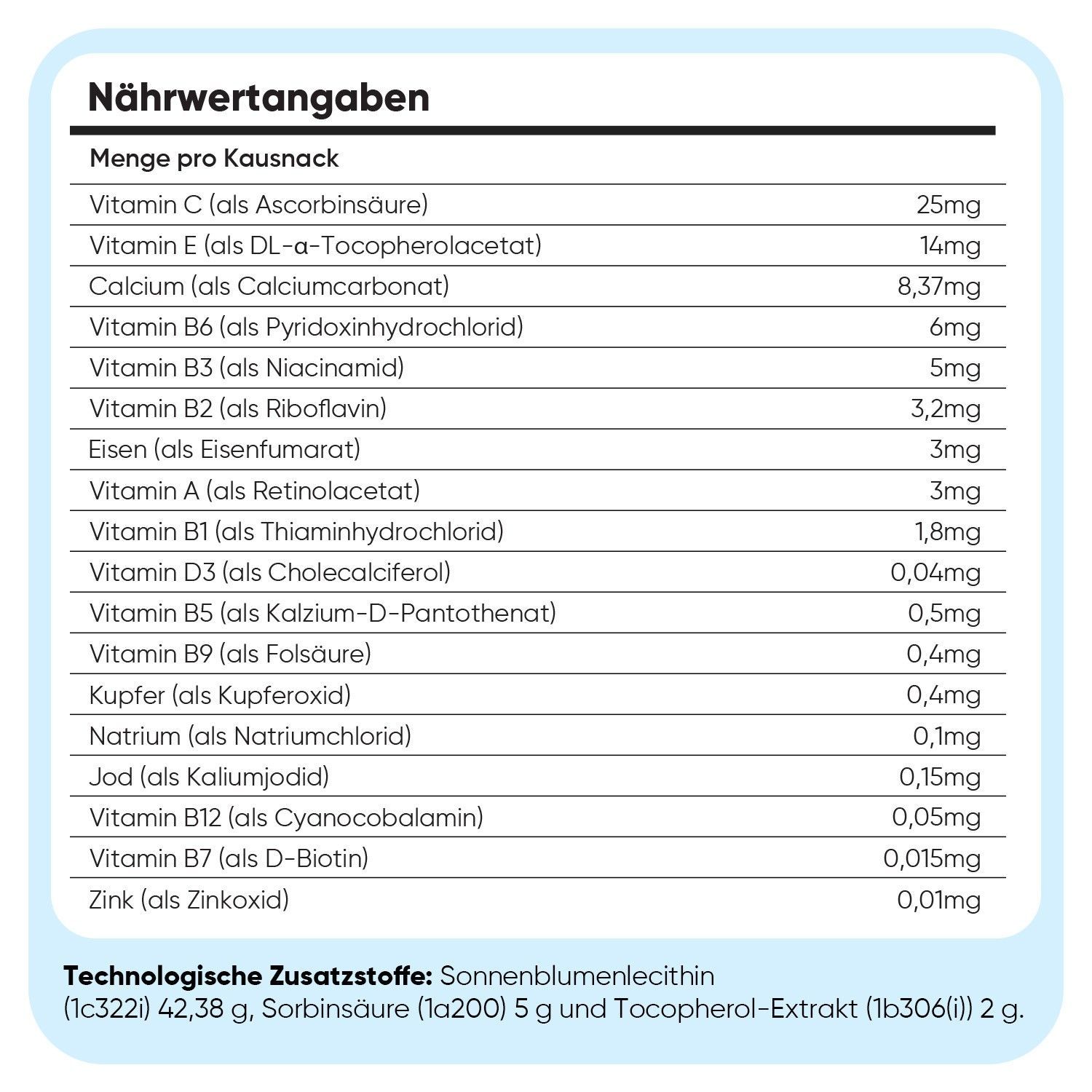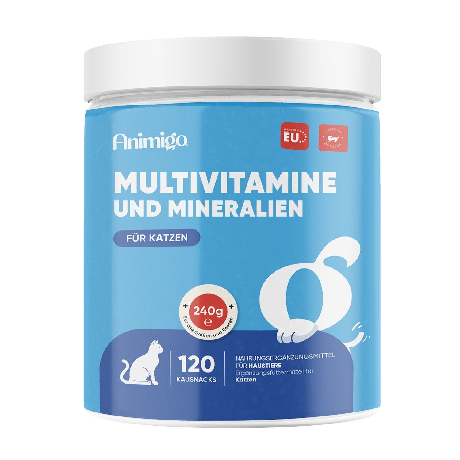 Multivitamin mit Vitamin B Komplex - Animigo Multivitamin Kausnacks für Katzen enthalten starke Zutaten wie die Vitamine A, B1, B2, B3, B5, B6, B7, B9, B12, C, E und D3. Jede Kausnack enthält außerdem wichtige Mineralien wie Kalzium, Eisen, Kupfer, Natrium, Jod und Zink. Diese Multivitamin- & Mineral-Kausnacks wurden für den täglichen Gebrauch entwickelt, unterstützen die natürliche Immunität und eignen sich für Katzen als Teil ihrer regulären Ernährung.