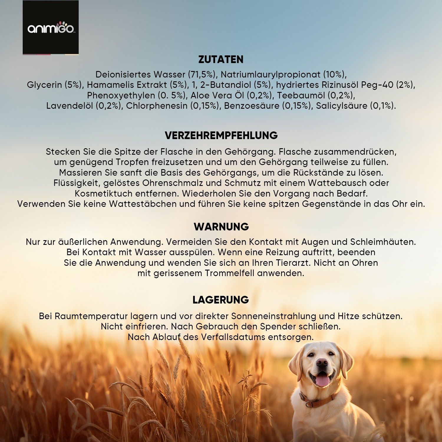 animigo Ohrreiniger für Hunde & Katzen - Ohrentropfen mit natürlichen Zutaten -3 Pack