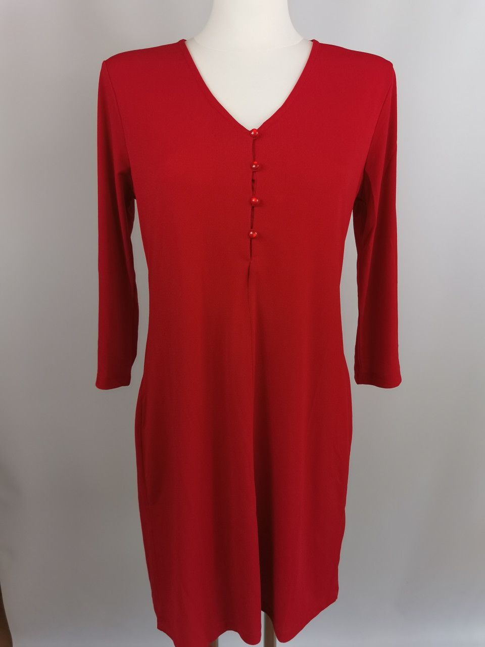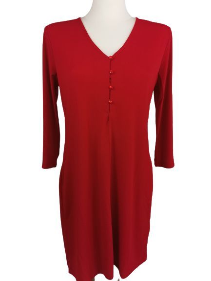 Aniston Selected Jerseykleid, rot, Gr. 38 Jerseykleid von Aniston Selected. Mit kurzer Knopfleiste. V-Ausschnitt mit Knopfleiste. Figurumspielende Passform. Aus bequemer Kunstfaser. Maschinenwäsche. Größenangaben in Gr. 38: Achsel zu Achsel: ca. 45cm Länge: ca. 90cm Reißverschluss: nein Materialzusa