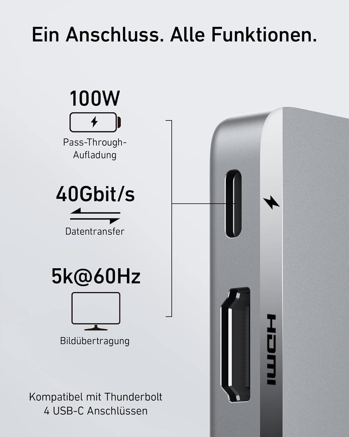 Anker Anker 547 USB C Hub, (7-in-2) fér MacBook, Kompatibel mit Thunderbolt 4 USB C