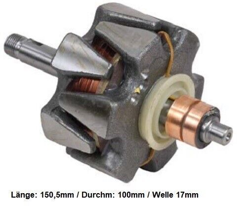 Sie bieten hier auf einen Rotor Läufer 90Amp. You offer on a Rotor Bosch 90Amp Technische Details Technical details Artikelnummer part number 13721 Volt Voltage 12V Leistung Power 90 Amp. Gesamtlänge total length 150,5mm Durchmesser Kern diamter core 100,0mm Drehrichtung Rotation CW CCW Dieses Produ