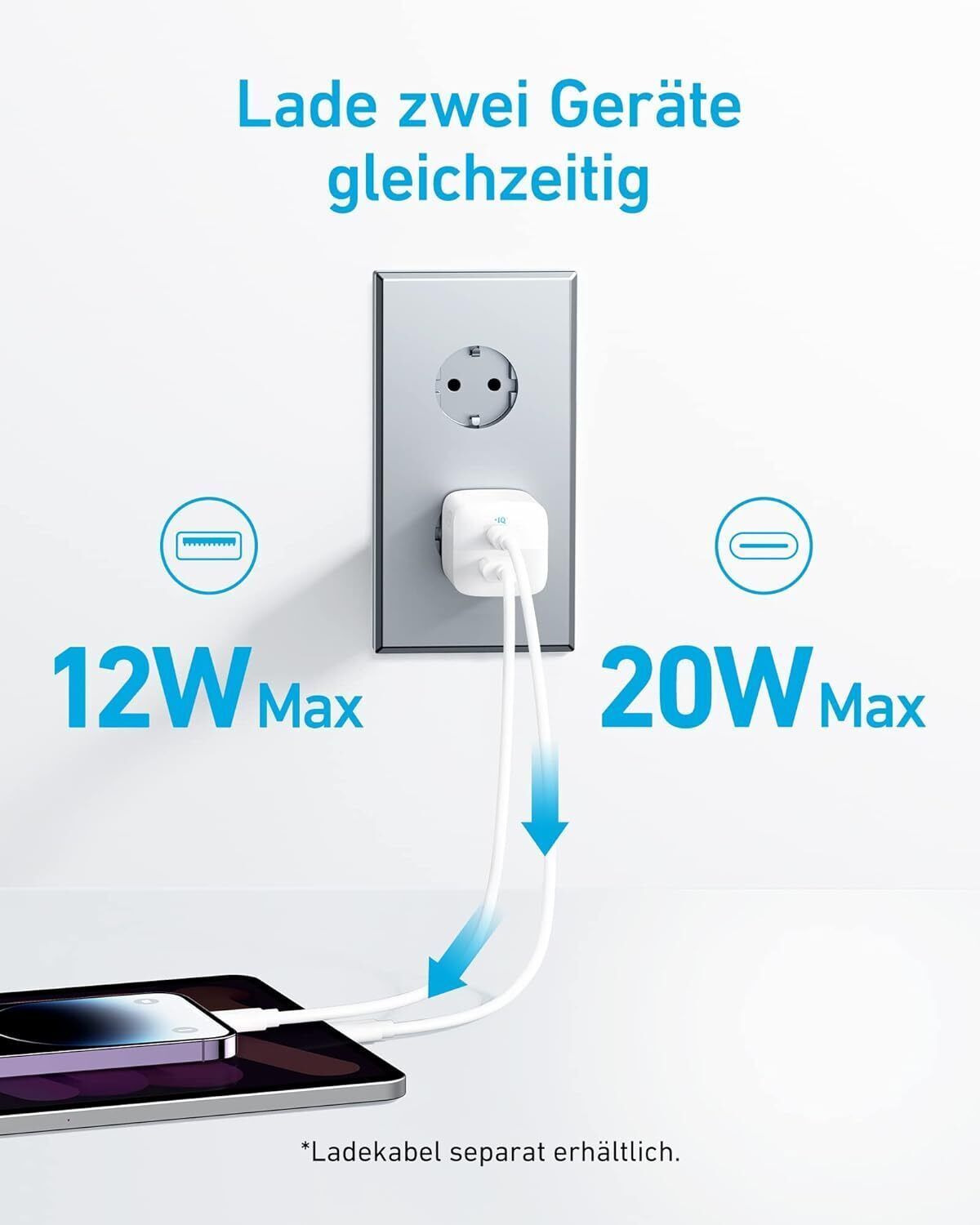 Anker Anker USB C 323 Ladegerät (33 W), Kompaktes, mit 2 Anschléssen fér iPhone 15