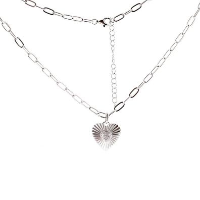 • Ankerkette aus 925 Silber mit Anhänger in Herzform mit Zirkonia