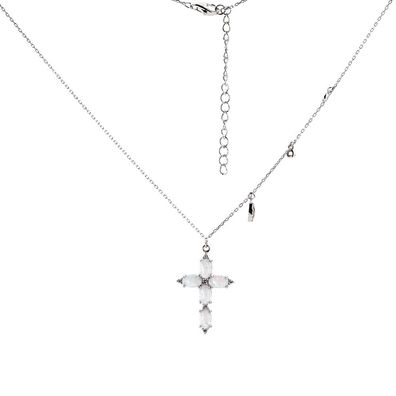 • Ankerkette aus 925 Silber mit einem Kreuzanhänger und Opalen