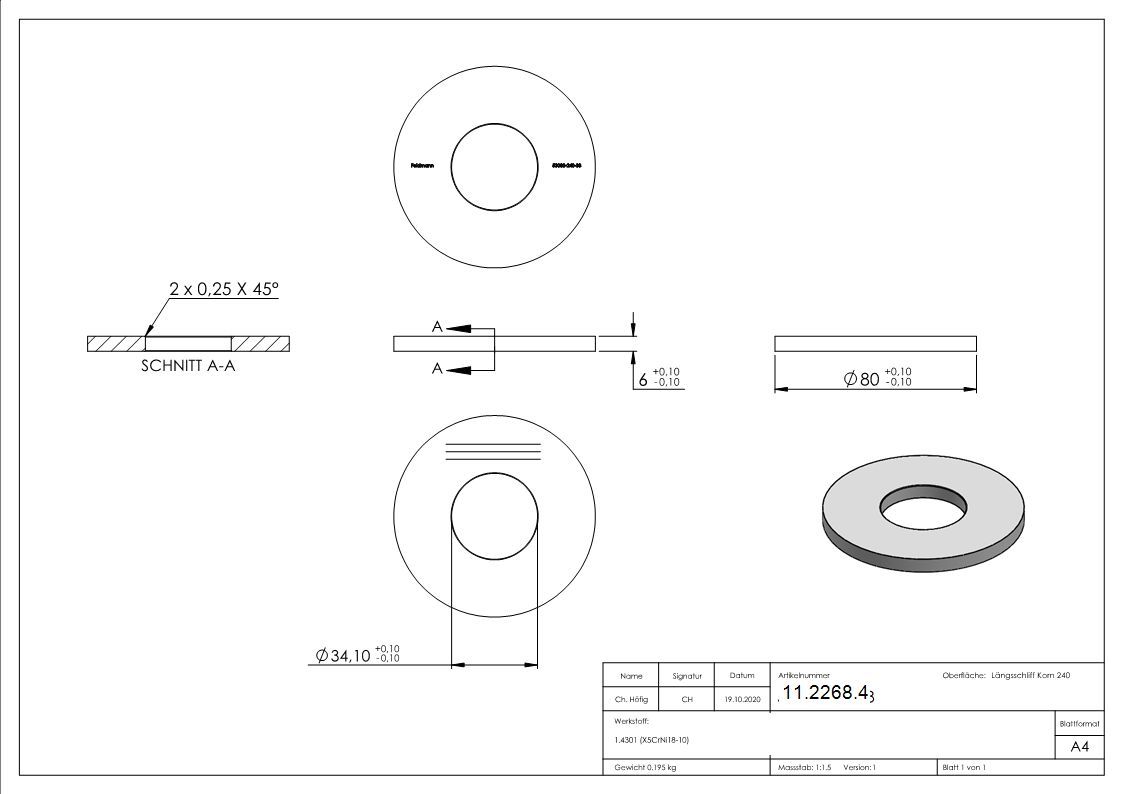 Ankerplatte Maße: 80x6 mm Längsschliff und Mittelbohrung V2A