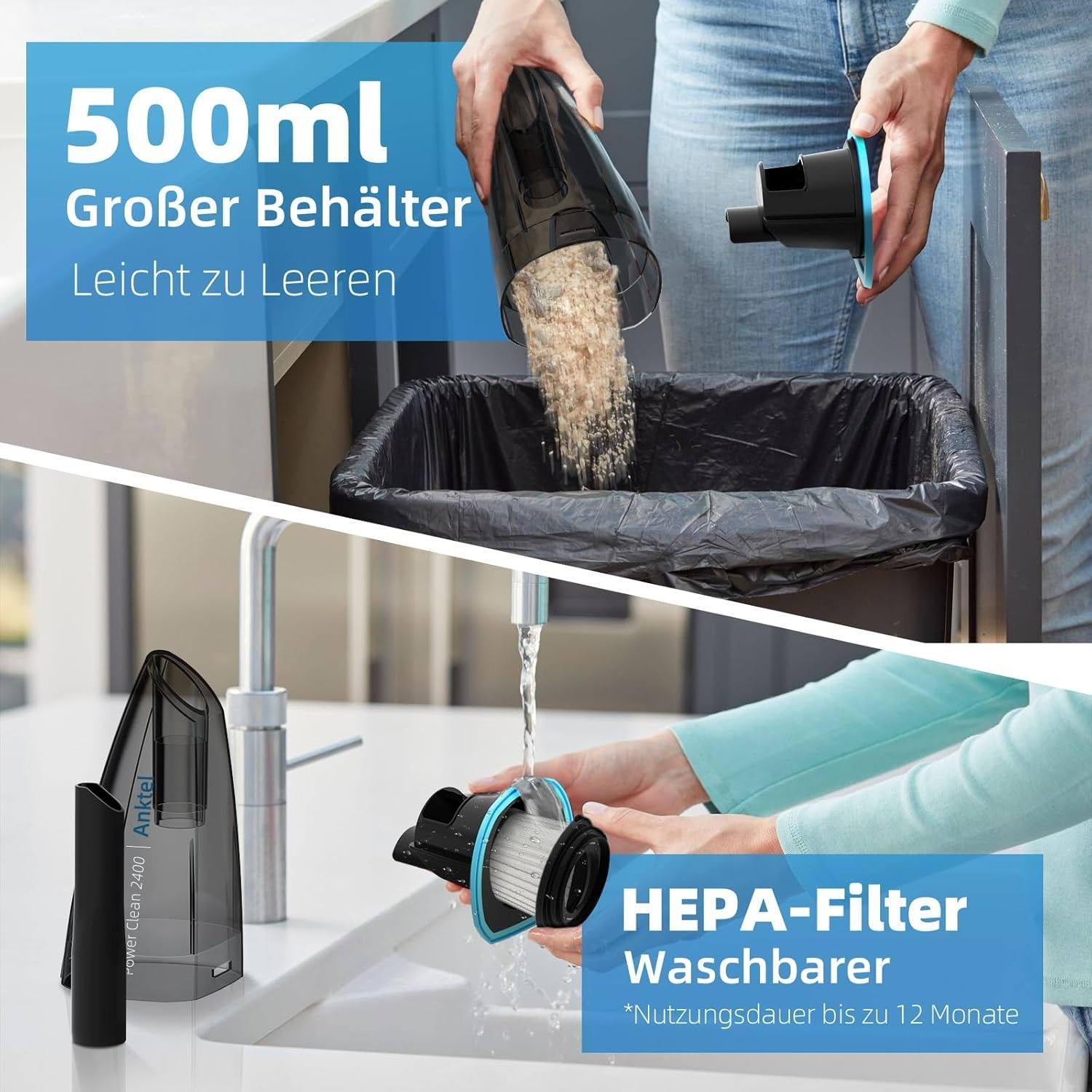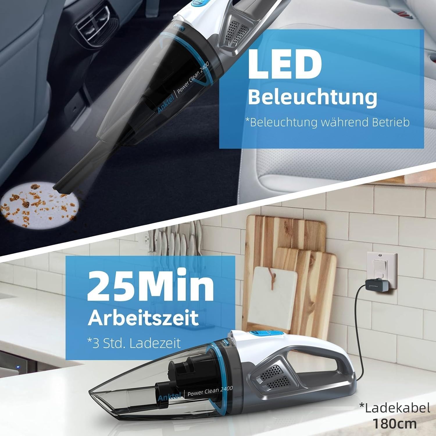 Anktel Handstaubsauger 9000Pa mit LED, Akku, HEPA-Filter, Nass&Trocken