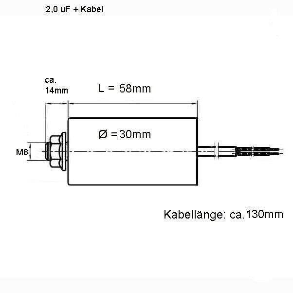 Nedis Anlaufkondensator, Motor Kondensator 2,0µF; 2 uF 450V Kabel, Motorkondensator