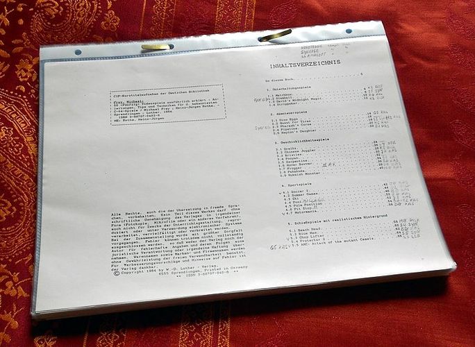 Bi ete 50 Videospiele ausführlich erklärt: Anleitungen, Tips und Techniken für die bekanntesten C64-Spiele , ISBN: 3-88707-0483-8 bzw. 048-8), Fotokopien von über 70 Seiten in Prospekthüllen 1. Unterhaltungsspiele Matchbox Slamball David's Midnight Magic Strippoker 2. Abenteuerspiele Dino Eggs Quest