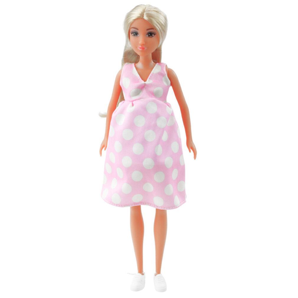 Anlily Schwangere Puppe Hellrosa Polka Dot Kleid Lange Haare