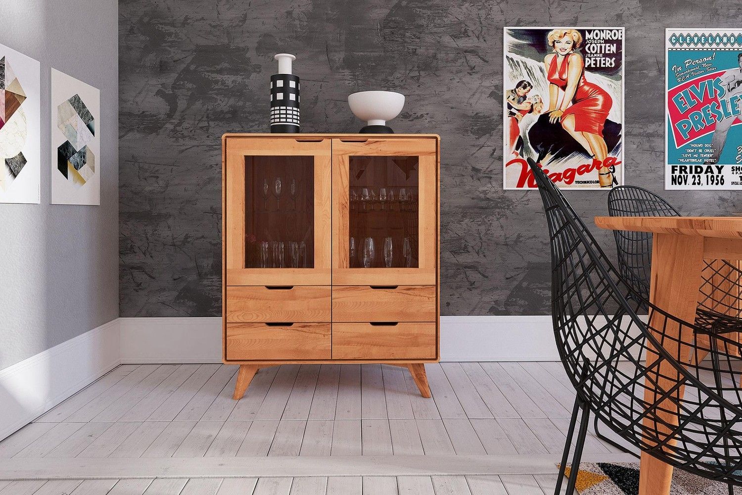 Anrichte Gerg aus Kernbuche massiv 90x40x108 cm mit 2 Türen und 4 Schubladen
