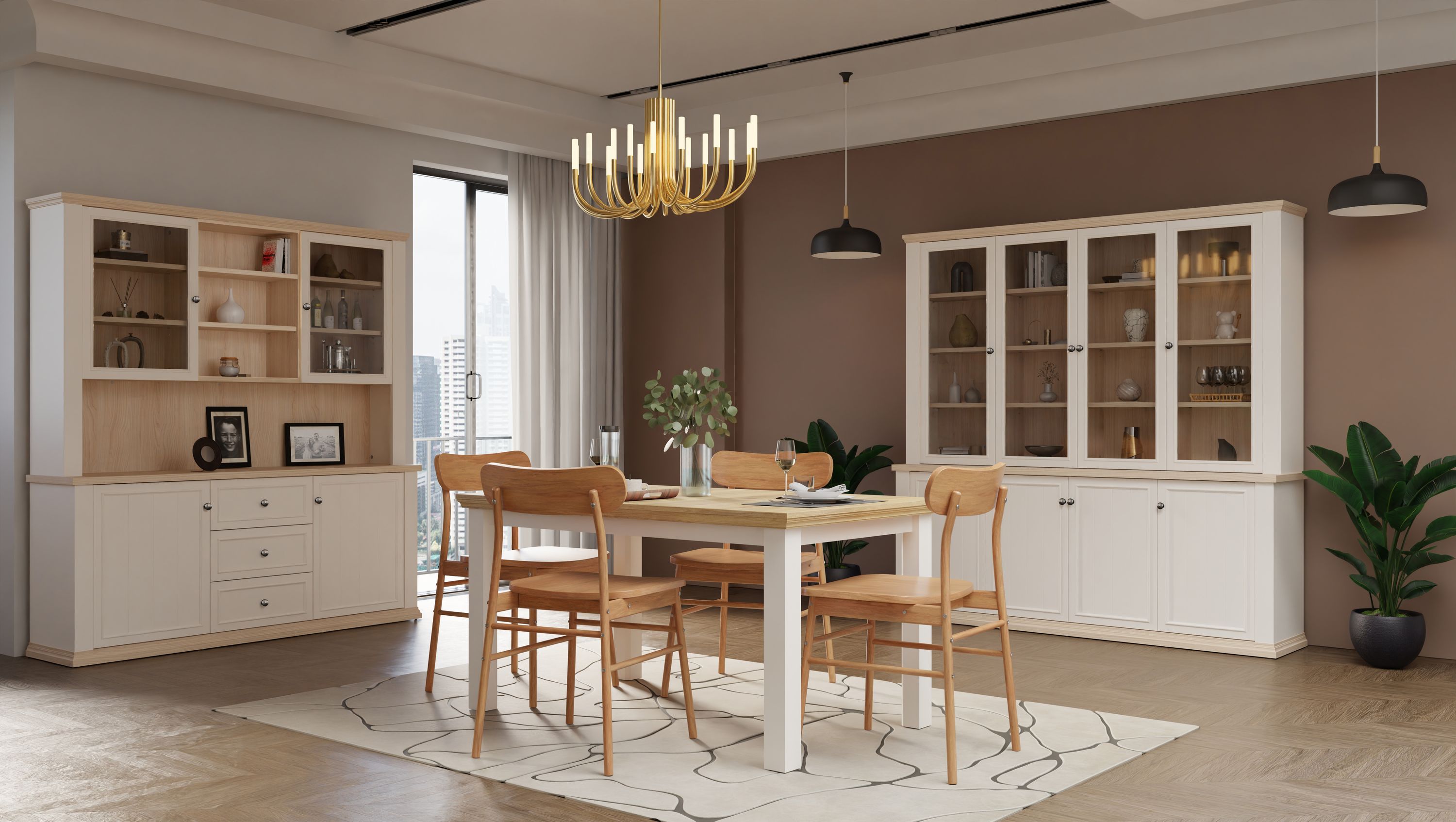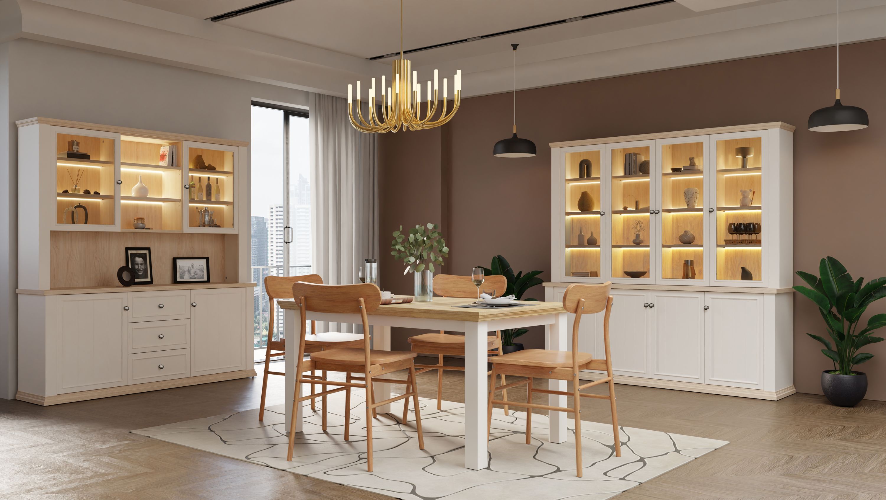 Anrichte Pontypool PNTR741-Q214 Buffet Kommode mit Aufsatz - Weiß/Riva Eiche