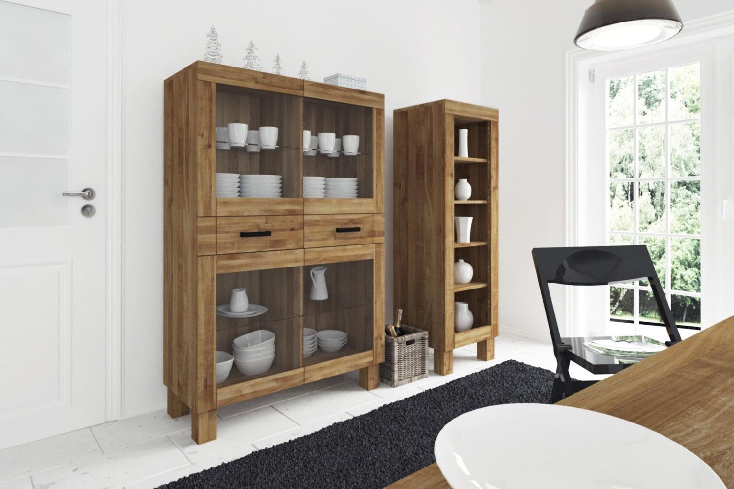 Anrichte Ringo aus Wildeiche massiv 105x45x162 mit 4 Glastüren und 2 Schubladen