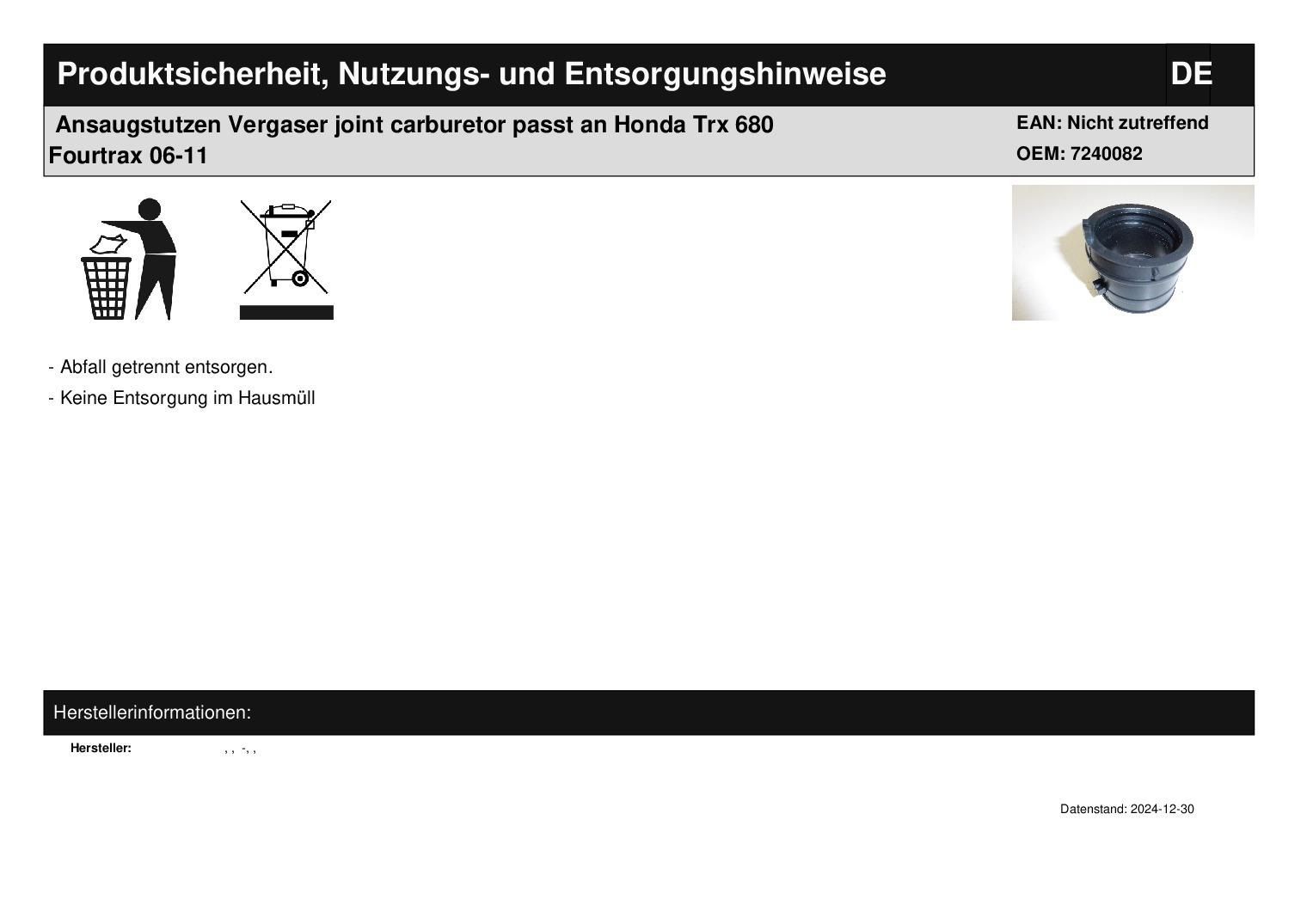 Ansaugstutzen Vergaser joint carburetor passt an Honda Trx 680 Fourtrax 06-11