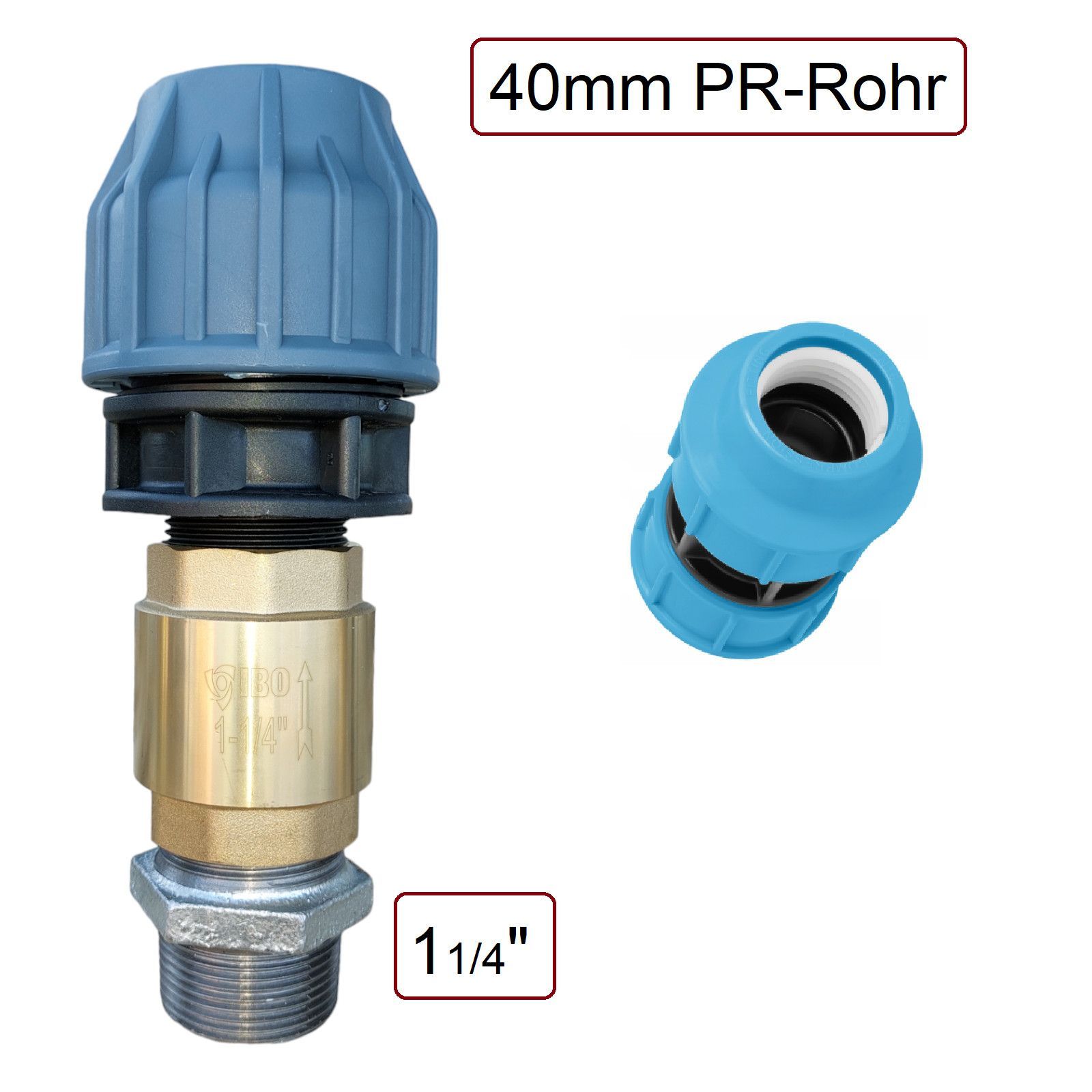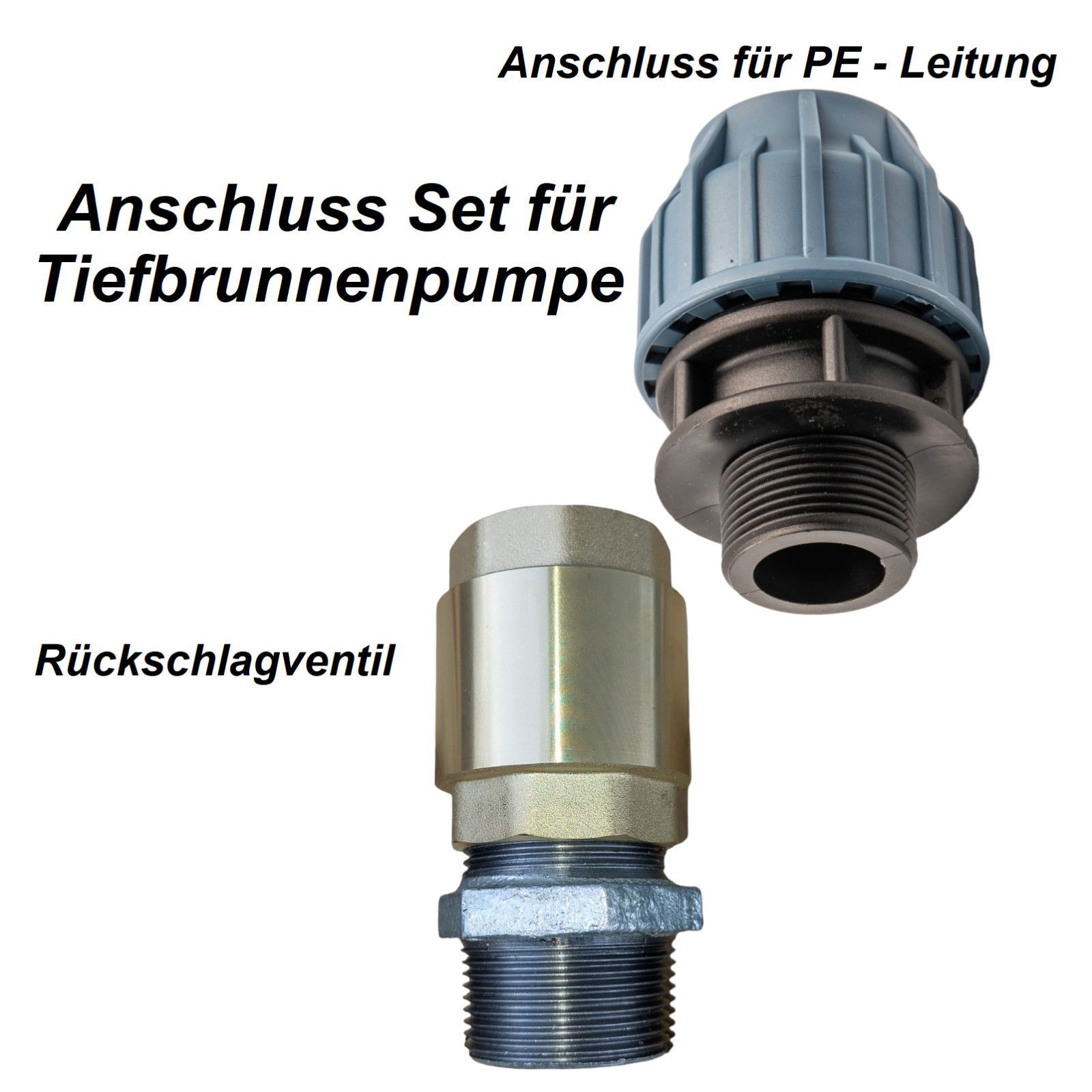 Anschlussset f. Tiefbrunnenpumpe 1 1/4" + Rückschlagventil für PE-Rohr Kunststoffrohr