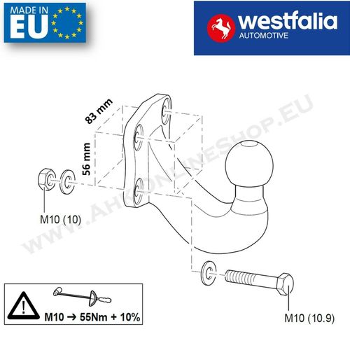 Anschraubplatte Kupplungskugel AHK-Bock 83x56mm Citroen Jumper II 2006-