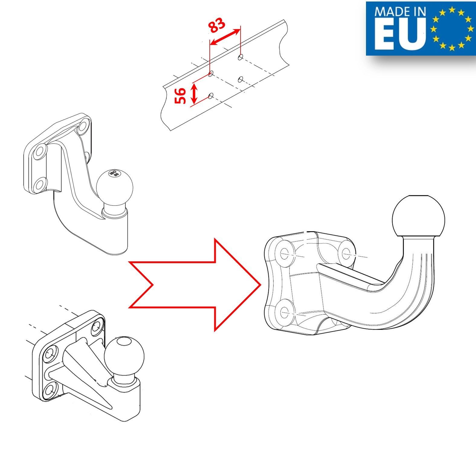 Anschraubplatte Kupplungskugel Anhängerkupplung AHK-Bock Peugeot Boxer I 94-06