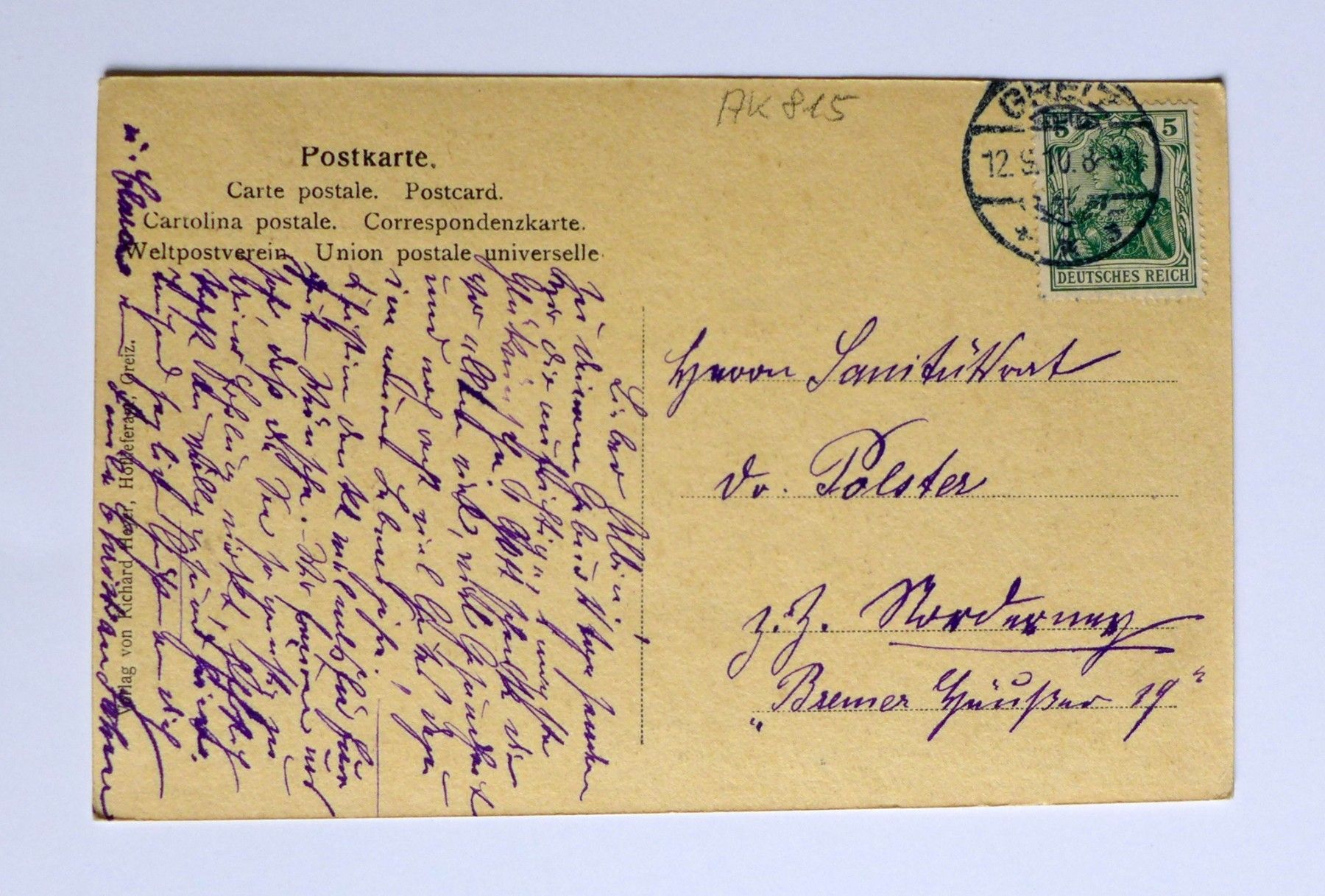 gebrauchter Zustand mit Gebrauchs - Lagerspuren siehe Fotos , ca. 14 x 9 cm , gelaufen 12. 9. 1910 , Lichtspiegelungen , Schattenbildung , Farbabweichungen können beim fotografieren auftreten , AK 815 original keine Kopie Das die Fotos sind Bestandteil der Artikelbeschreibung ! Alle Namen und Warenz