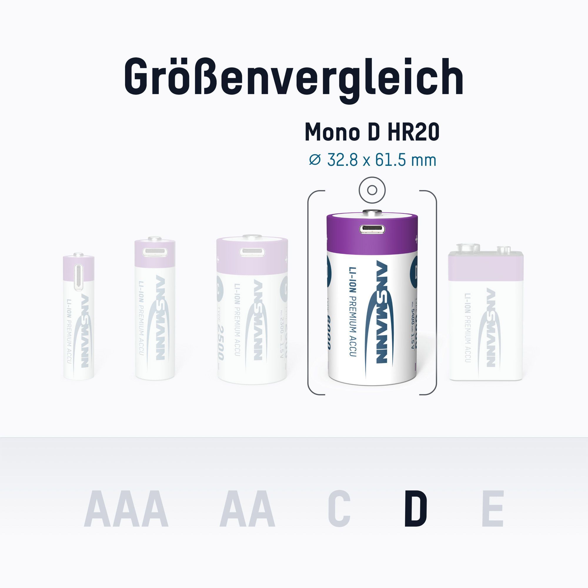 Ansmann 1314-0005 Li-Ion Akkus Mono D Typ 6000