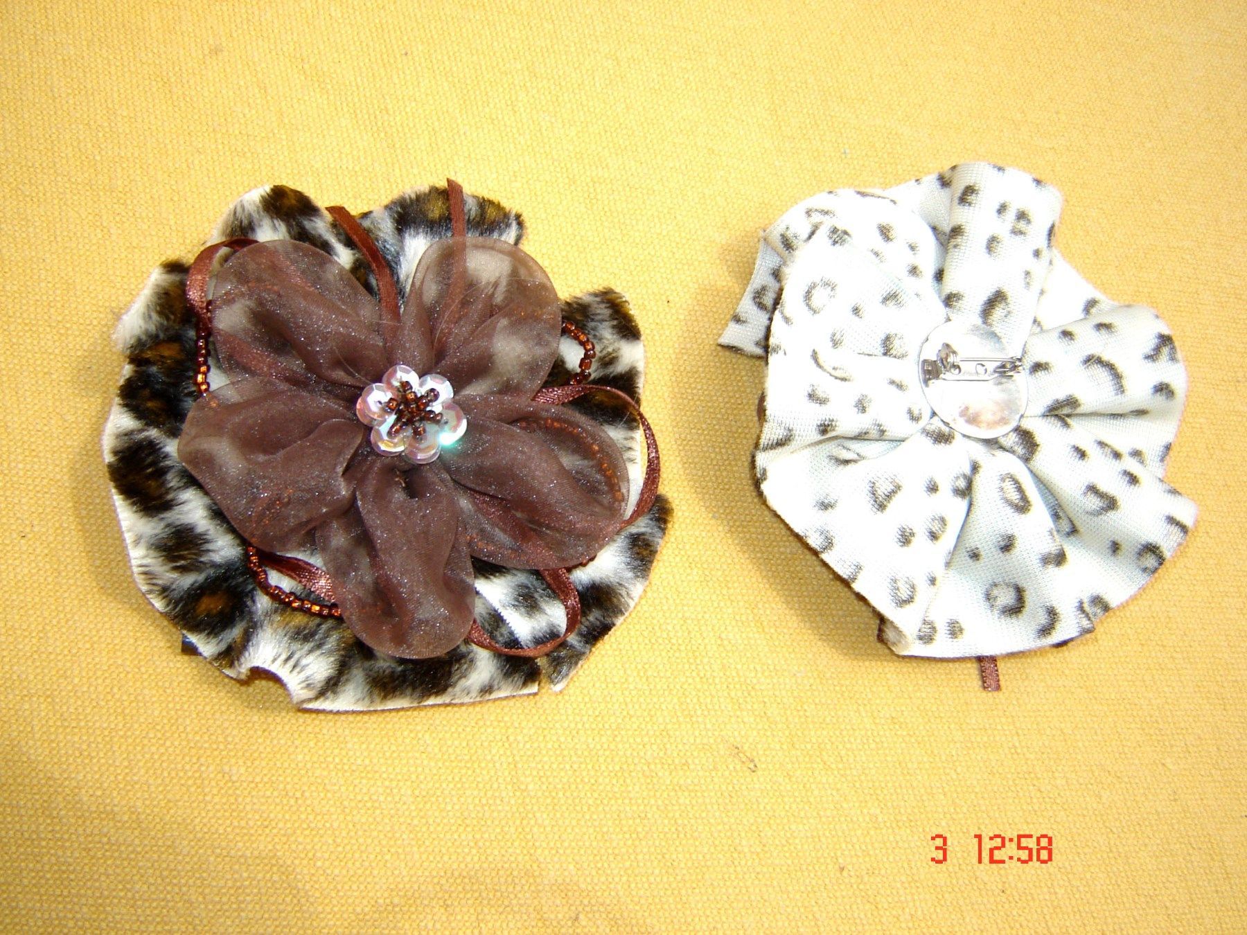 Ansteckblüte Stoff Animalprint m Chiffon in Farbe braun natur 10cm Z p
