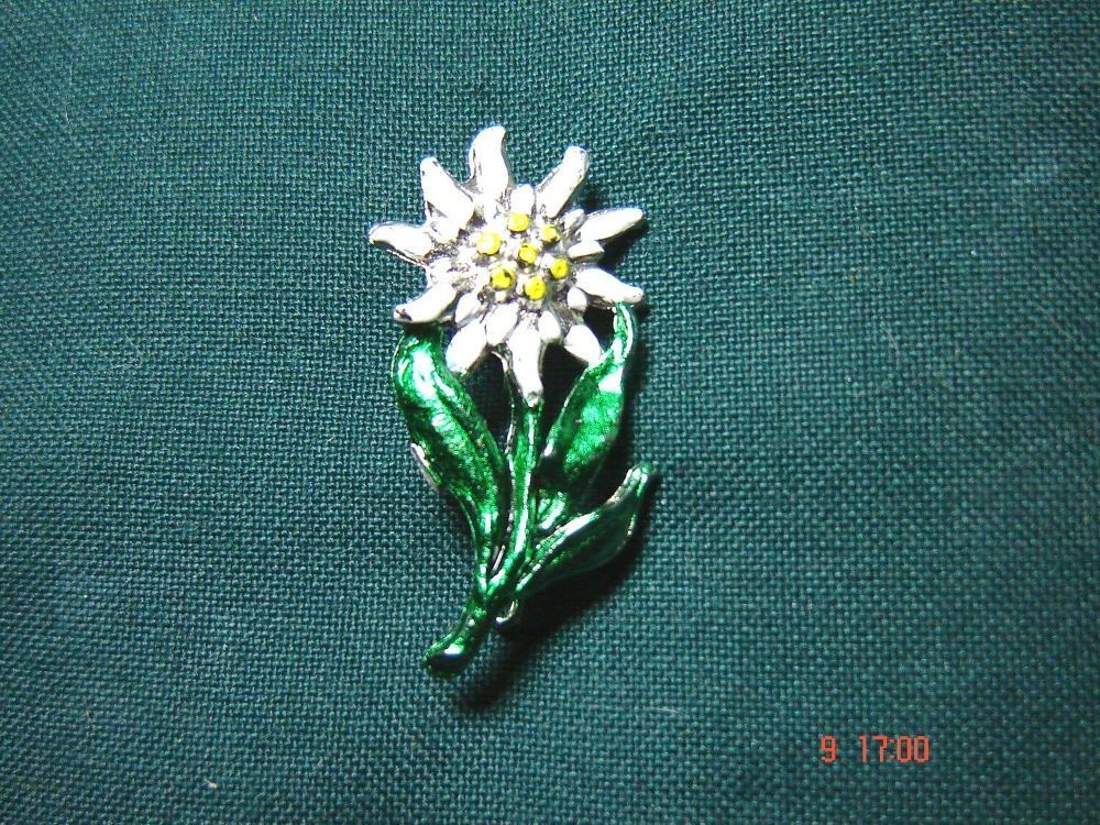 Anstecknadel Edelweiß mit Stiel handbemalt Trachtenbrosche Hutnadel z Tracht s-p