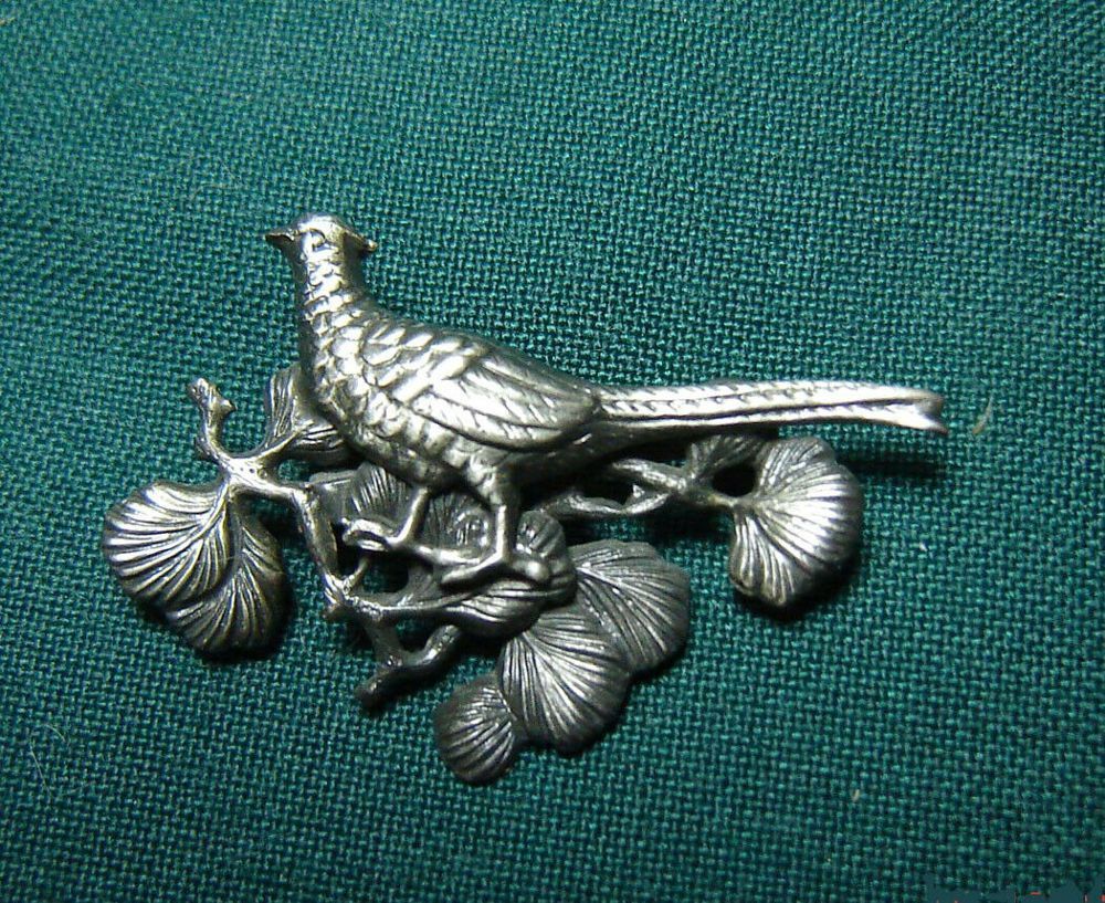 Anstecknadel Fasan auf Latschen echt versilbert Hutabzeichen Jagd Hutnadel s-p
