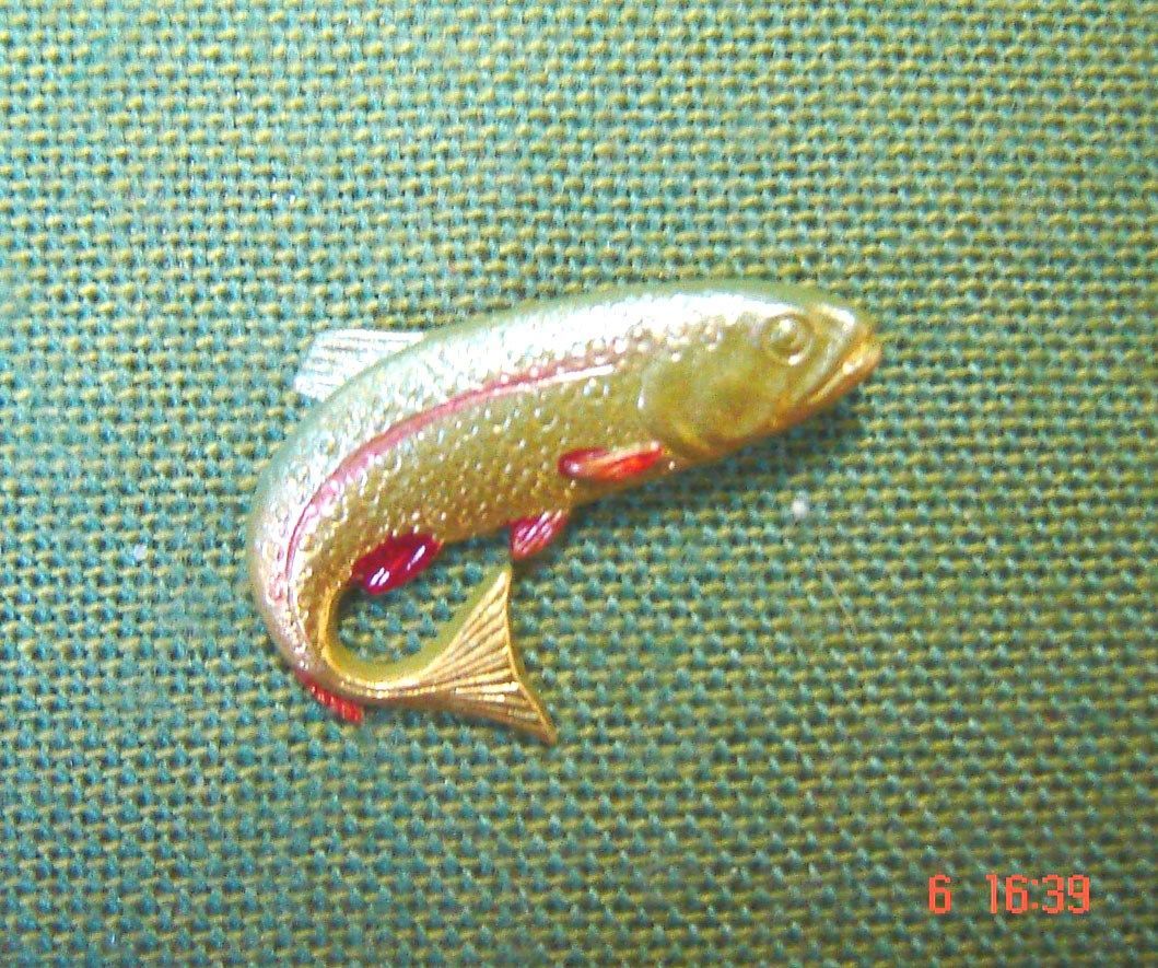 Anstecknadel Fischen Forelle handbemalt Hutschmuck Fischerei Hutabzeichen s-p