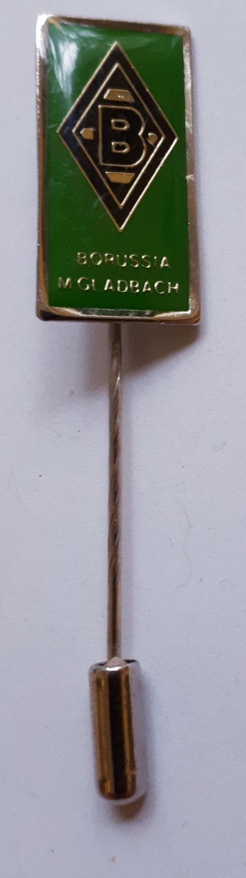 Anstecknadel Fussballverein "Borussia Mönchengladbach" mit Bremse Höhe ca. 2,4 cm Breite ca. 1,2 cm Gesamtlänge 5,8 cm Die Anstecknadel ist in einem guten,gebrauchten Zustand mit altersbedingten Gebrauchsspuren wie leichten Verschmutzungen und kleinen Kratzern. Sie wurde nicht gereinigt,geputzt oder geschönt.