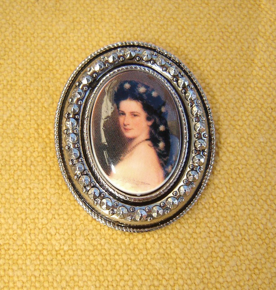 Anstecknadel Kaiserin Sissi sehr schöne barocke Brosche Königstreue 4x3,2 cm s-p