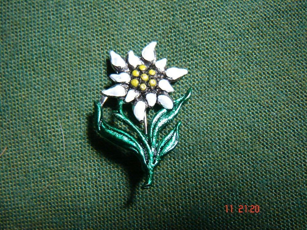 Anstecknadel schönes Edelweiß mit Stiel und Blätter handbemalt Trachtenbrosche s-p