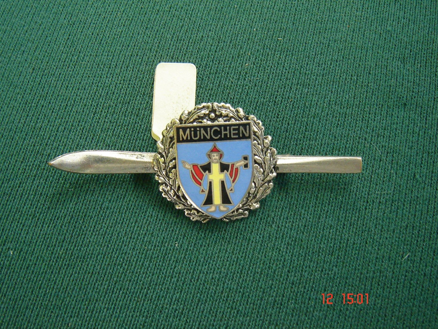 Anstecknadel Ski silberfarben mit Plakette blau " München " emailliert Skiwandern s-p