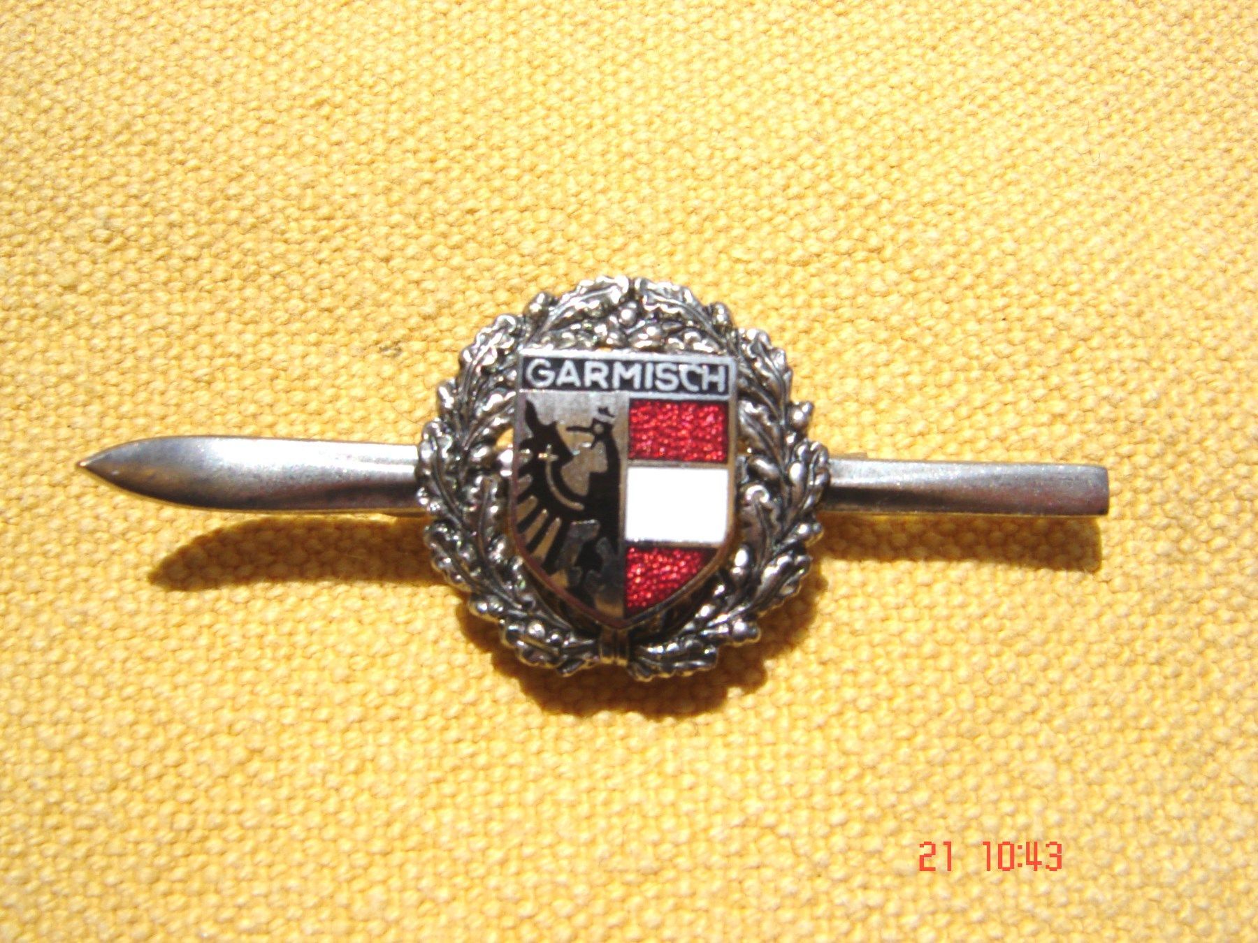 Anstecknadel Ski silberfarben mit Plakette "Garmisch" emailliert Skiwandern s-p