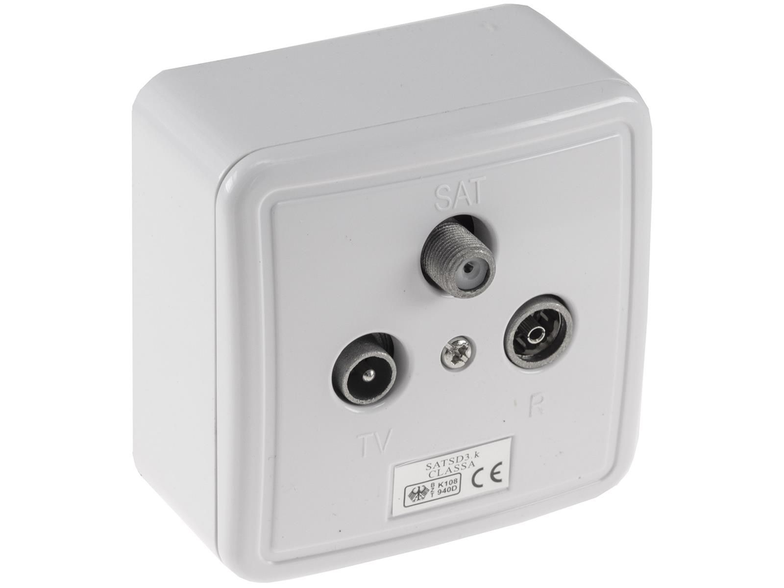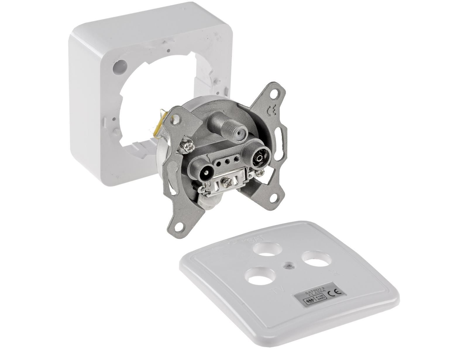 ChiliTec Antennendose TV, Radio + Satmit Aufputz Rahmen und Abdeckung