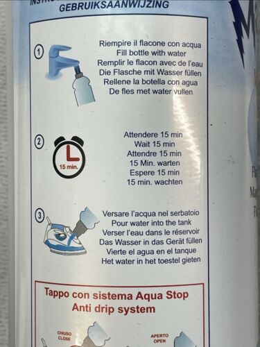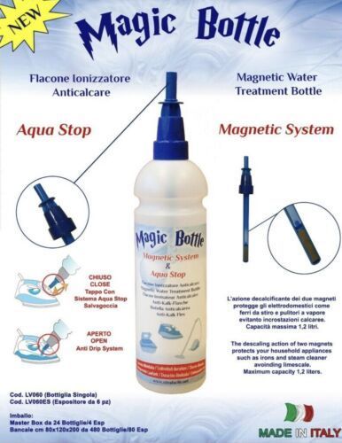 Anti-Kalk-Flasche Magic Bottle Original Neu Füllflasche Vorwerk Feelina Bügeleisen UVP.49,99€ Magnetsystem & AquaStop Die Entkalkungswirkung der beiden Magnete schützt Haushaltsgeräte wie Bügeleisen und Dampfreiniger und vermeidet Kalkablagerungen. Kappe mit AquaStop-System Maximales Fassun