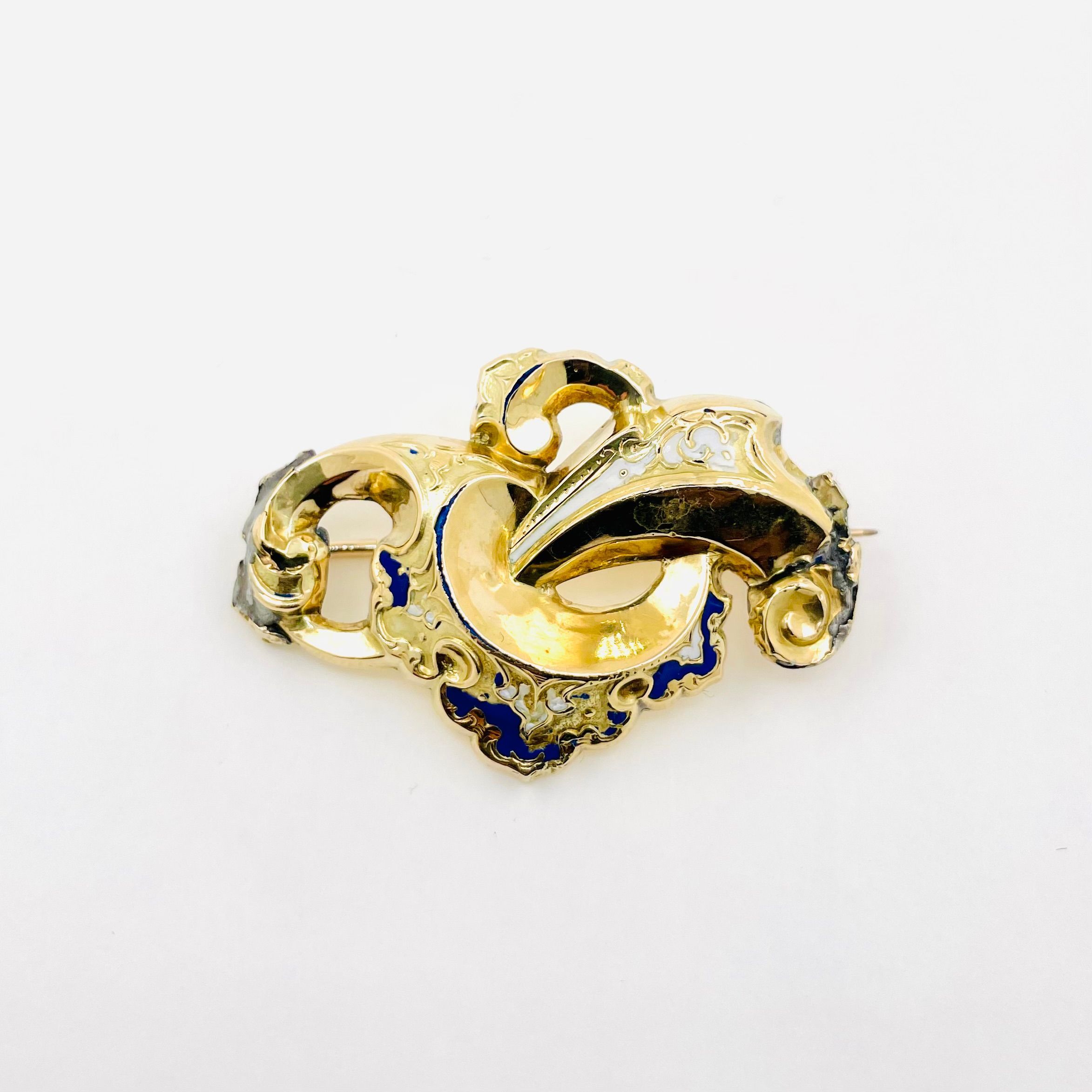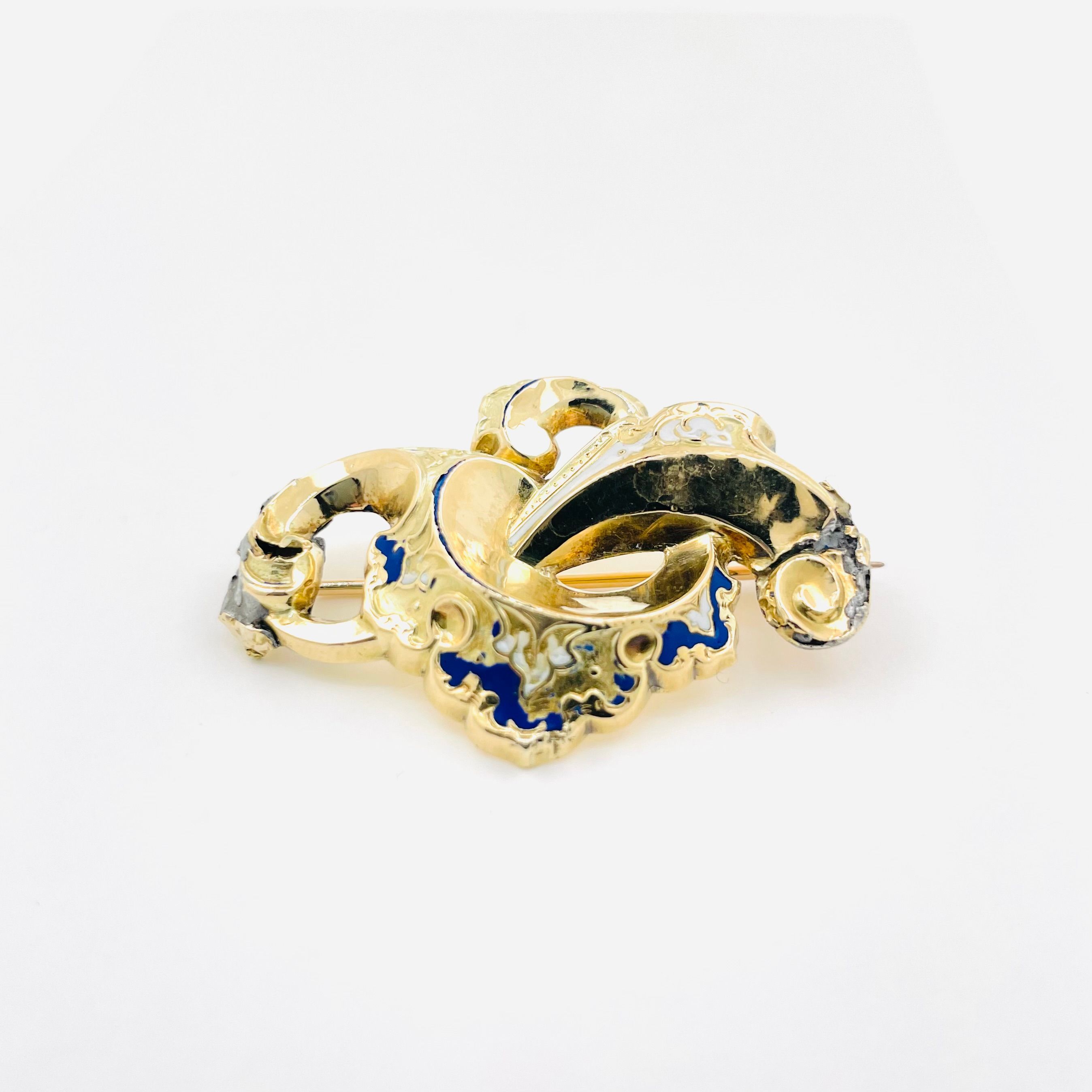 Antike Brosche 14 kt Gold Jugendstil Emaille