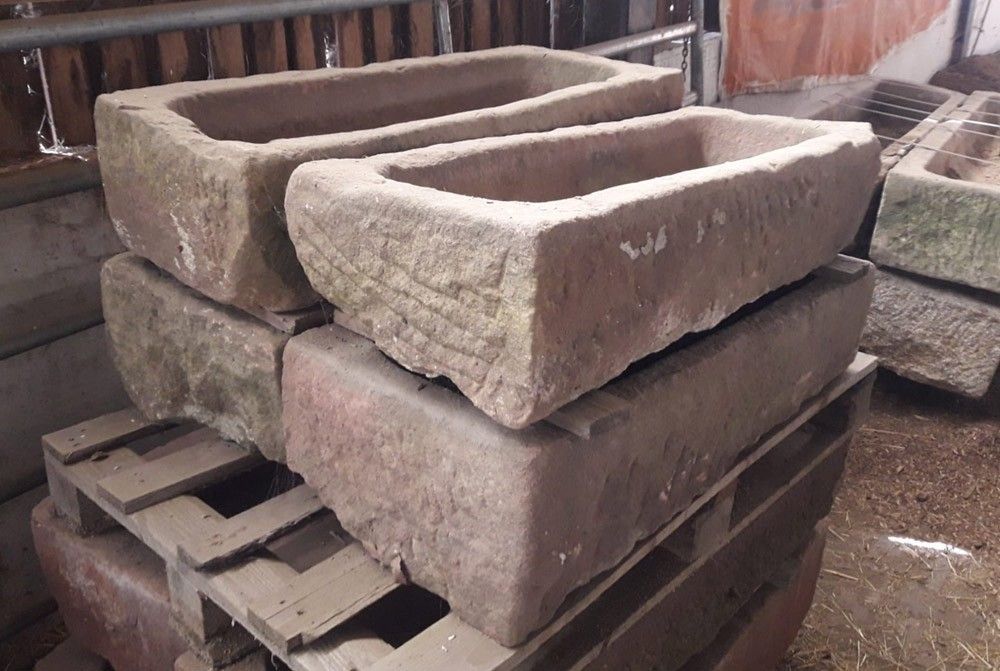 Sehr schöne alte handgehauene Sandsteintröge, robuster Stein, witterungsbeständig, ideal für Außenbereich, passt wunderbar in jeden Garten und vor jedes Haus Längen: 90-120 cm, Breite: ca. 40 cm, Höhen: 20-25 cm 15 Stück auf Lager Preis pro Stück: Euro 377,31 zzgl. MwSt. = Euro 449,-- Lieferung per ... Mehr