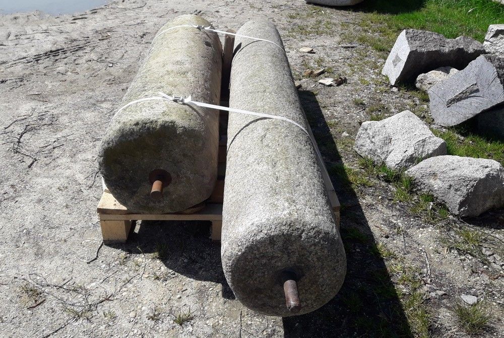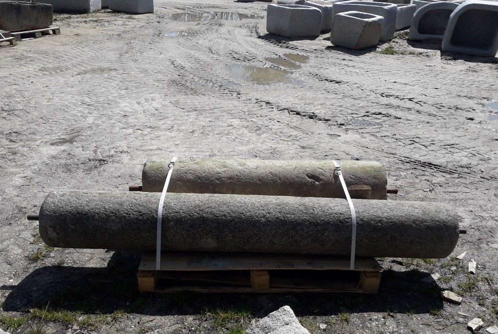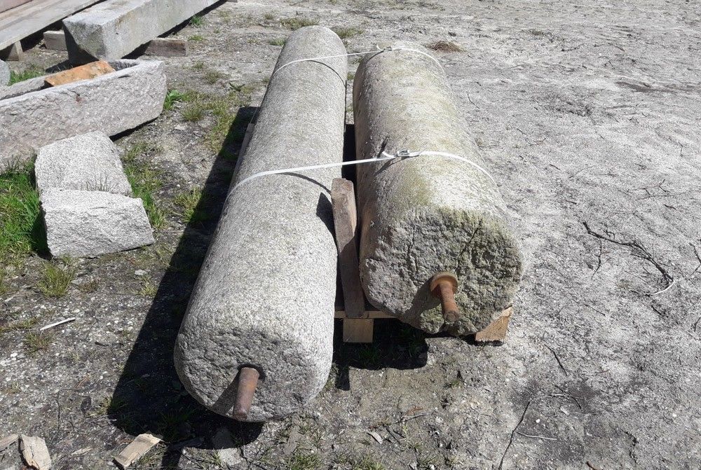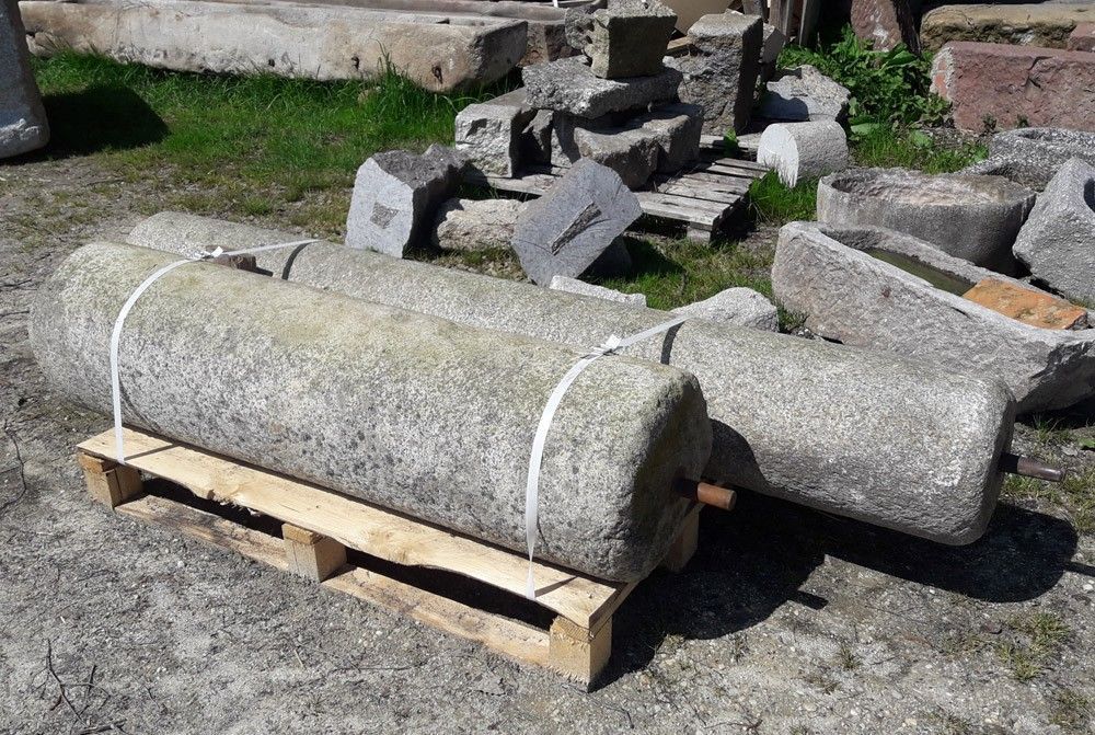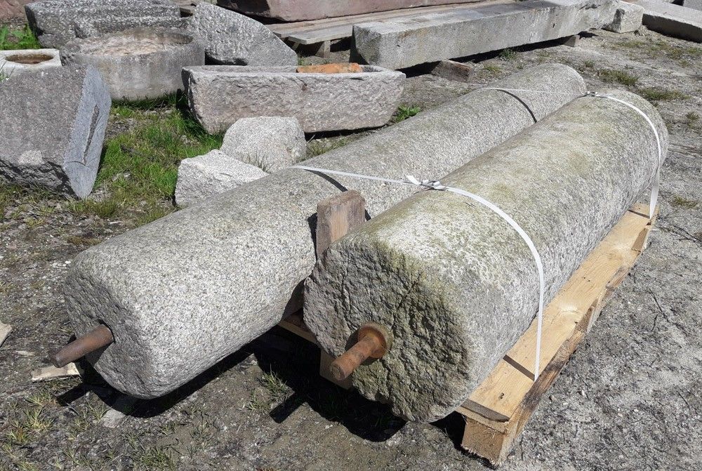 Zwei antike Granitwalzen mehrere hundert Jahre alt, handgehauene Raritäten, zwei Stück auf Lager Granitwalze 1 - Durchmesser: 35 cm, Breite: 140 cm, Gewicht: 350 kg Granitwalze 2 - Durchmesser: 30 cm, Breite: 210 cm, Gewicht: 350 kg Preis pro Walze: Euro 545,38 zzgl. MwSt. = Euro 649,-- Lieferung pe... Mehr