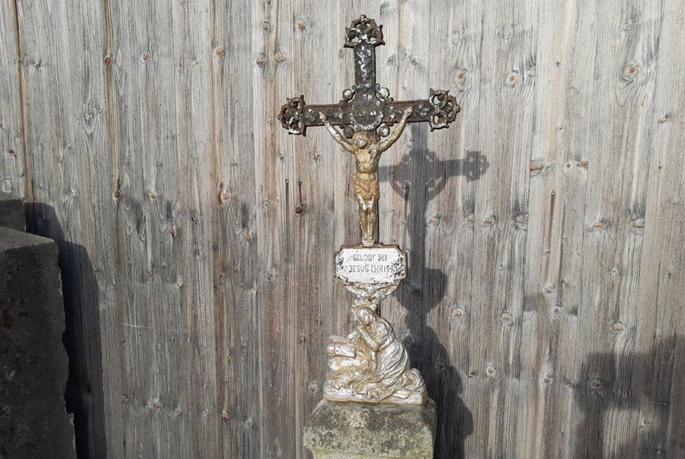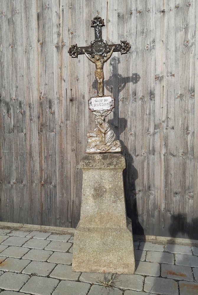 Wunderschönes antikes Metallkreuz mit altem Granitsockel, seltene Rarität, top Originalzustand Gesamthöhe: 167 cm Granitsockel 78 cm hoch, Grundfläche: 41 x 27 cm Preis: Euro 1679,83 zzgl. MwSt. = Euro 1999,-- Lieferung per Spedition oder kostenlose Selbstabholung möglich. Bei Fragen erreichen Sie u... Mehr