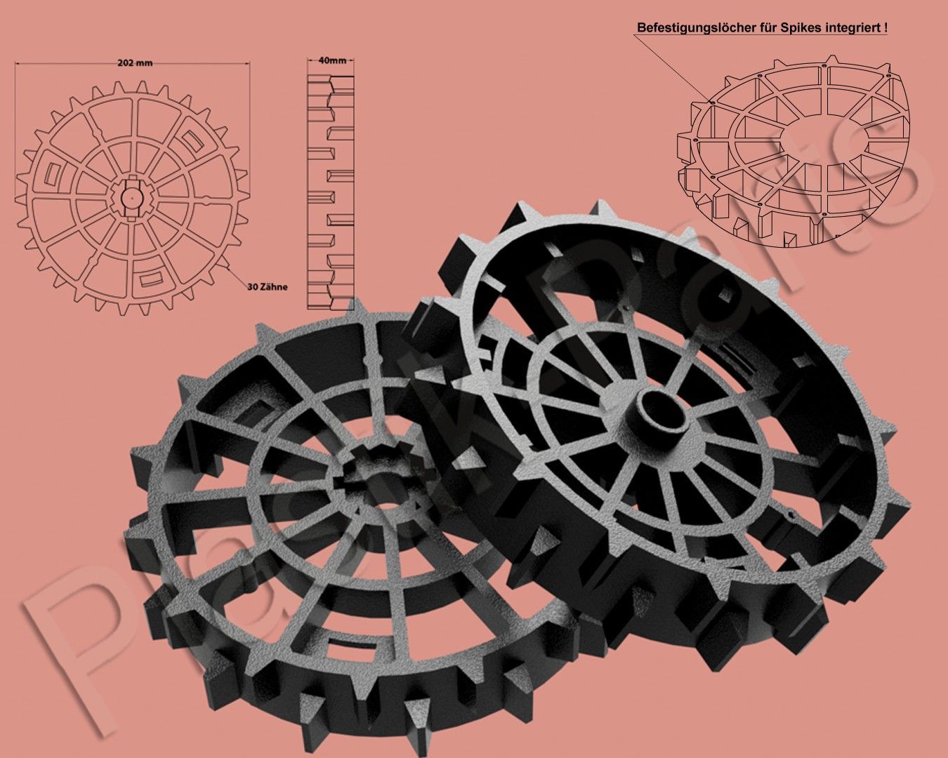 Antriebsräder 2er Set Offroad Profil für WORX WG790E WG757E WG758E WG796E WG799E