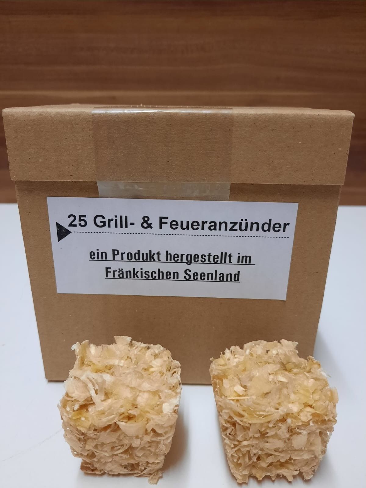 Guten Tag, Verkauft werden regional hergestellte Grill - & Feueranzünder aus Holzspäne, Hobelspäne und Wachs. Ein Anzünder reicht pro Heizvorgang, durch seine sehr gute Brenndauer von ca. 10 Minuten. Dieser natürliche Feueranzünder garantiert das einfache sichere und bequeme Anzünden von Feuer i